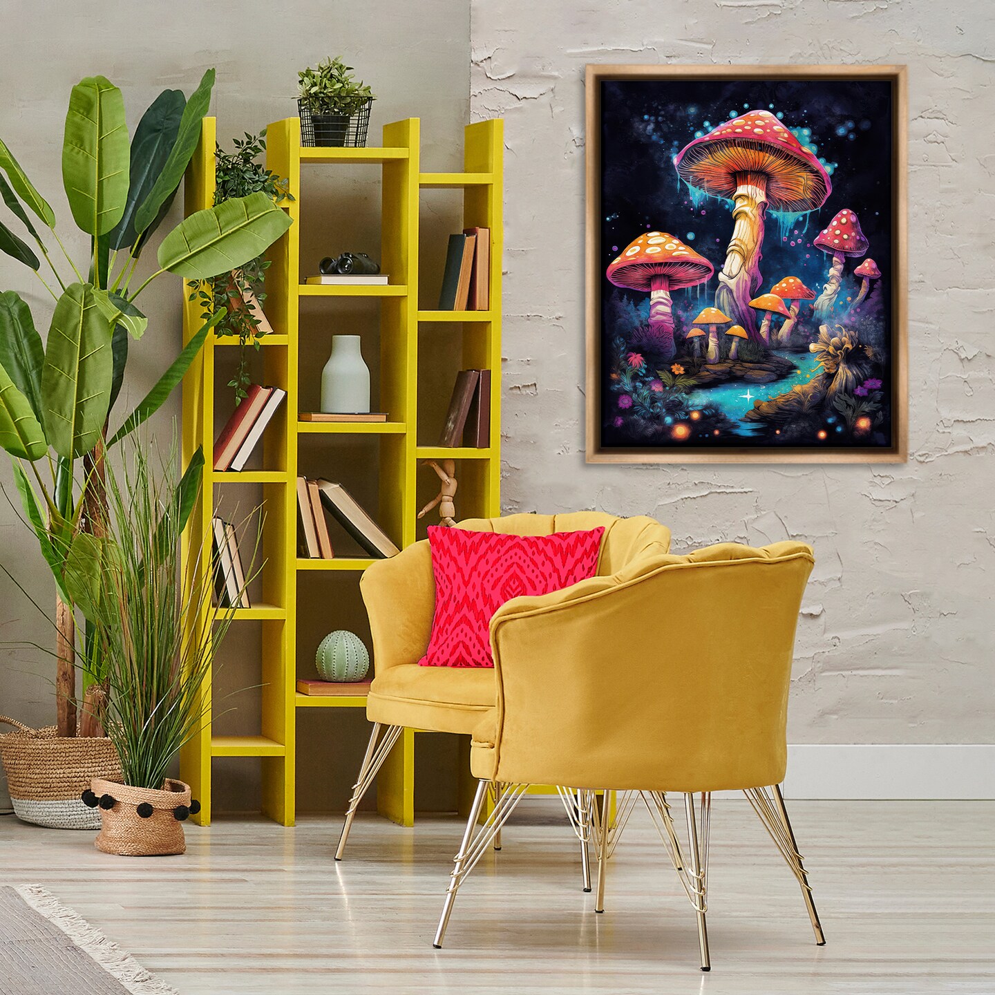 Stupell Industries Psychedelic Mushroom Scene Framed Floater Canvas Wall Art Design by Nina Blue
