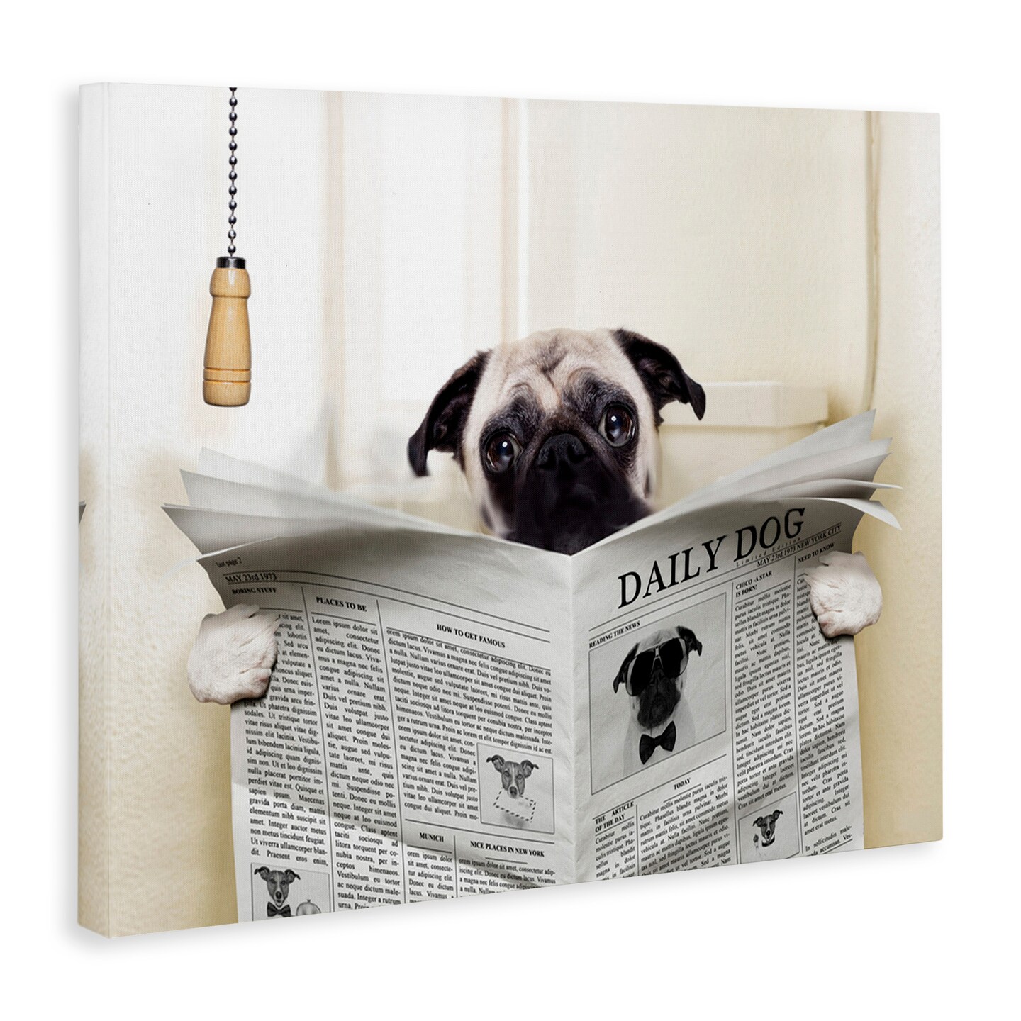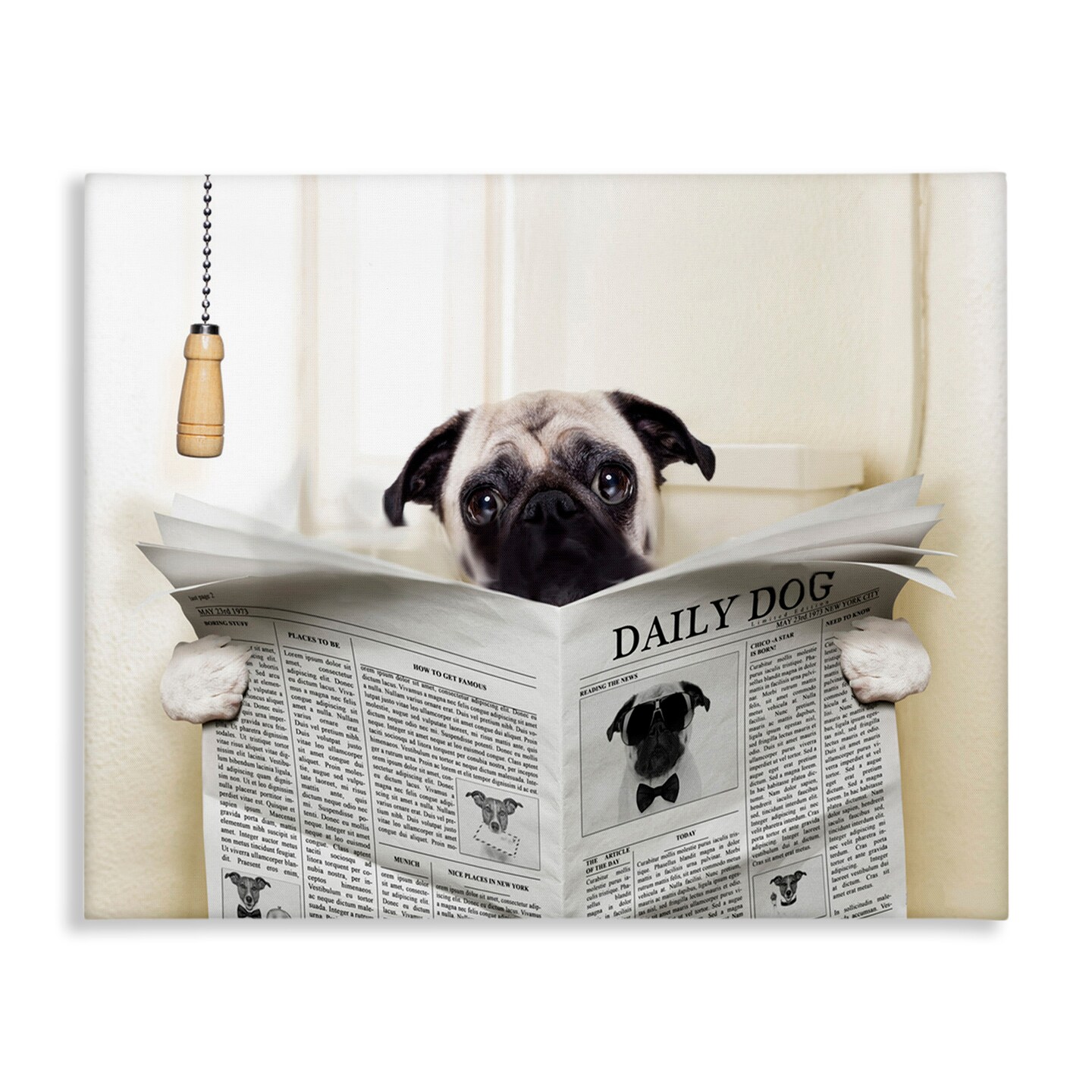 Stupell Industries Pug Reading Newspaper in Bathroom Canvas Wall Art