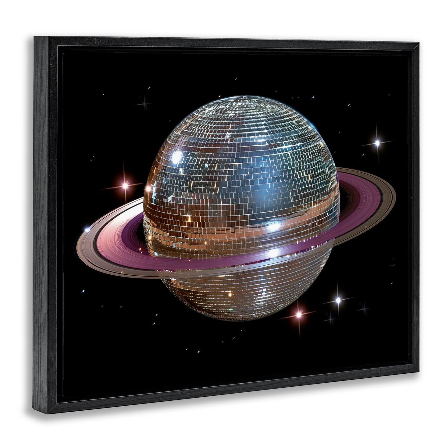 Stupell Industries Purple Disco Ball Planet Floating Frame, design by Decent Exposures