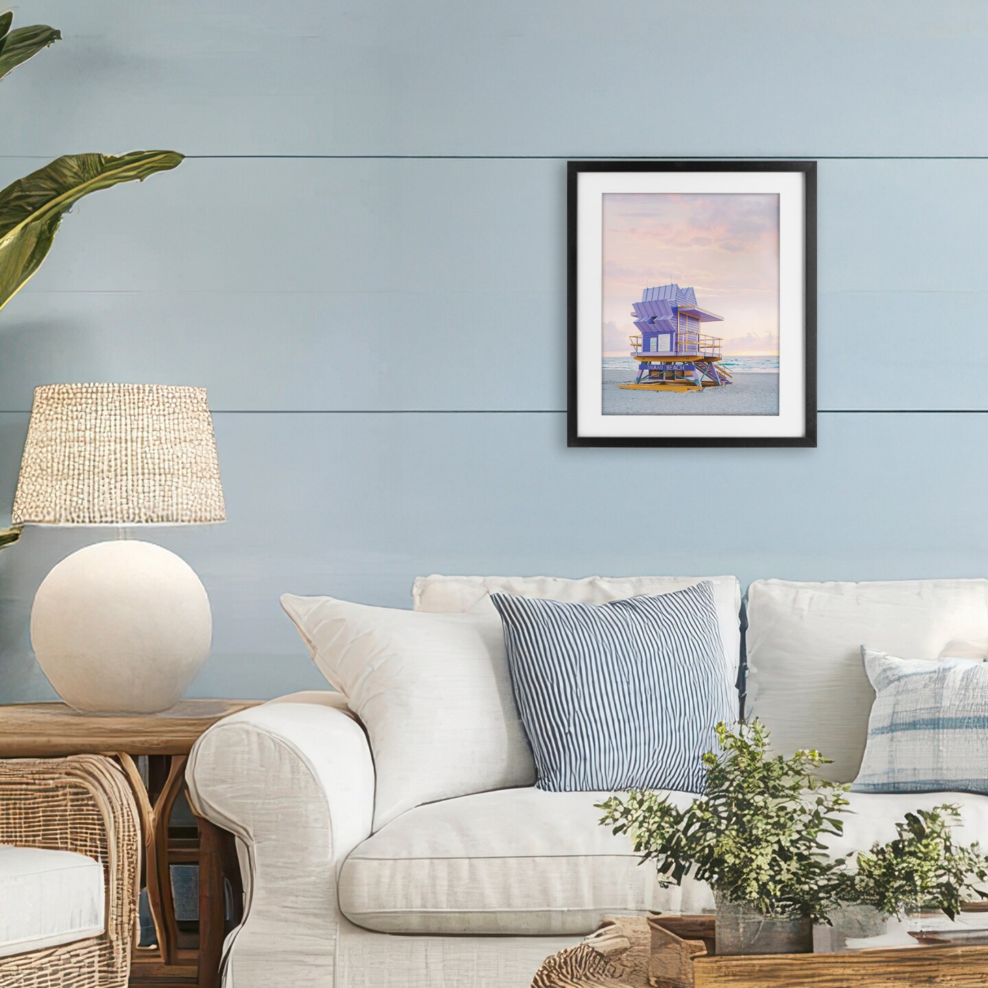 Stupell Industries Purple Lifeguard Stand Landscape Black Framed Print Under Glass, design by Sisi and Seb