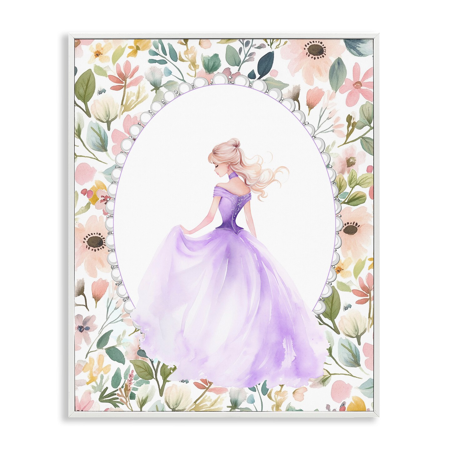 Stupell Industries Purple Princess with Pearl Border Framed Giclee, design by Christine Simpson Art