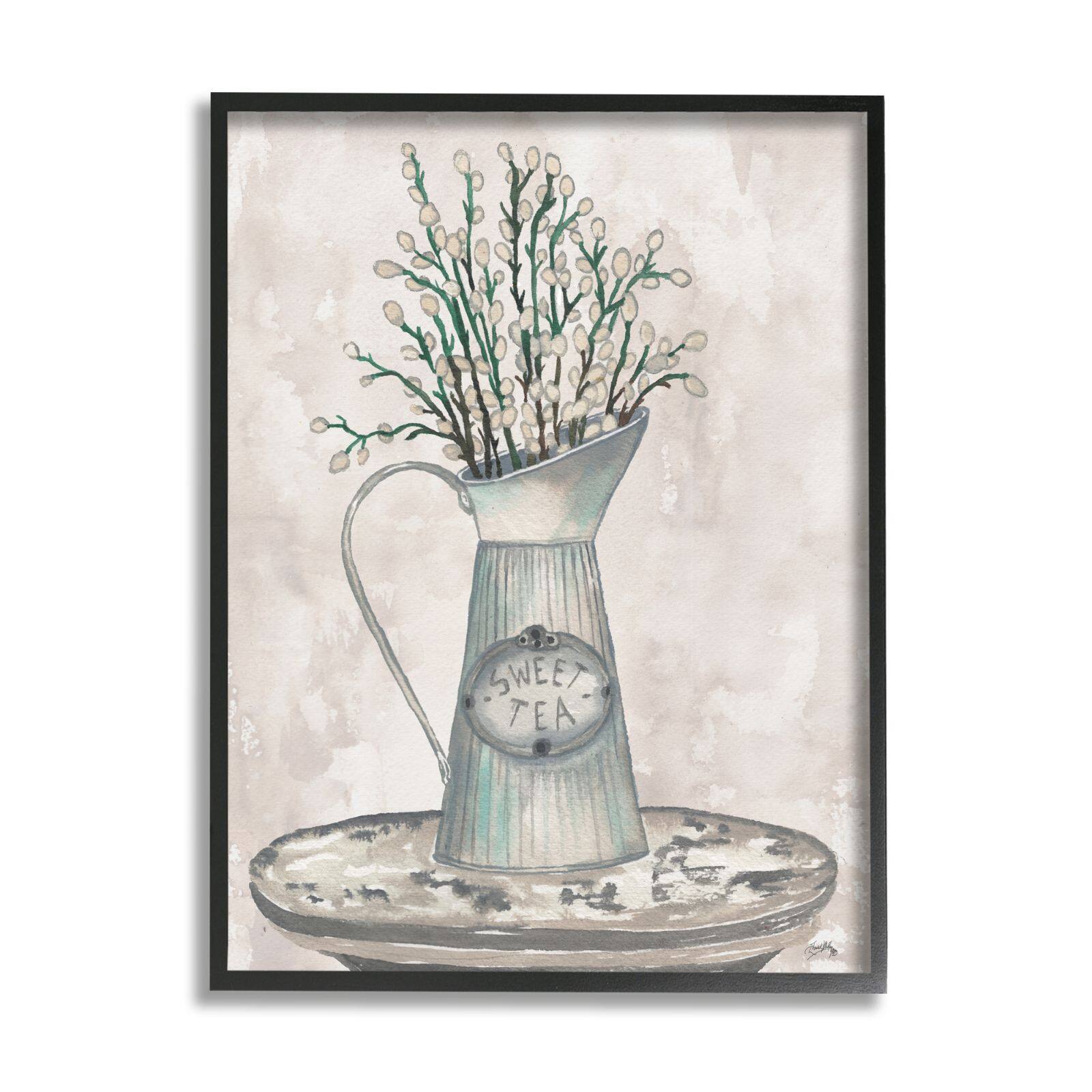 Stupell Industries Pussy Willow Botanicals Sweet Tea Country Jar Painting Framed Wall Art