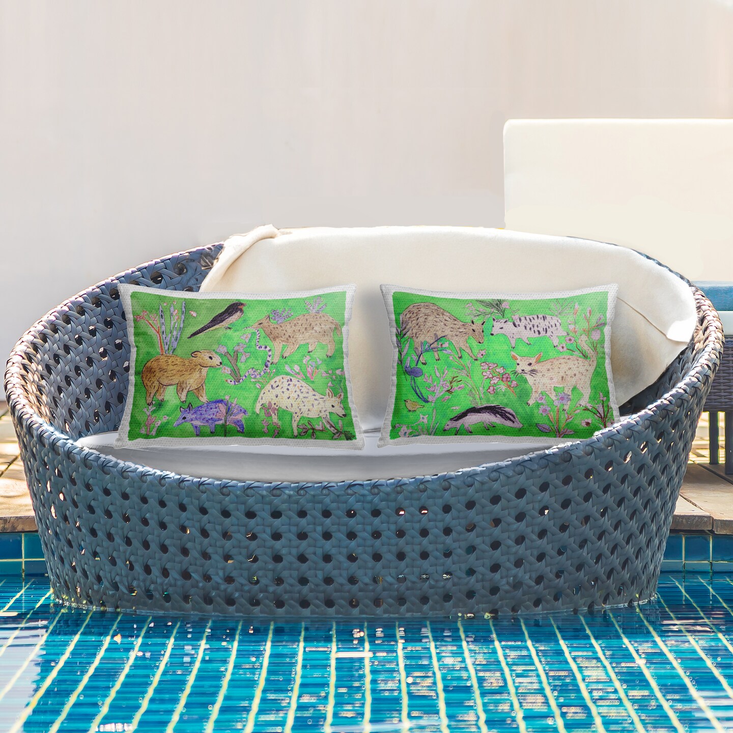 Stupell Industries Quirky Meadow Menagerie Animals 2 Piece Outdoor Printed Pillow Set design by Melissa Wang, 14 x 7 x 20