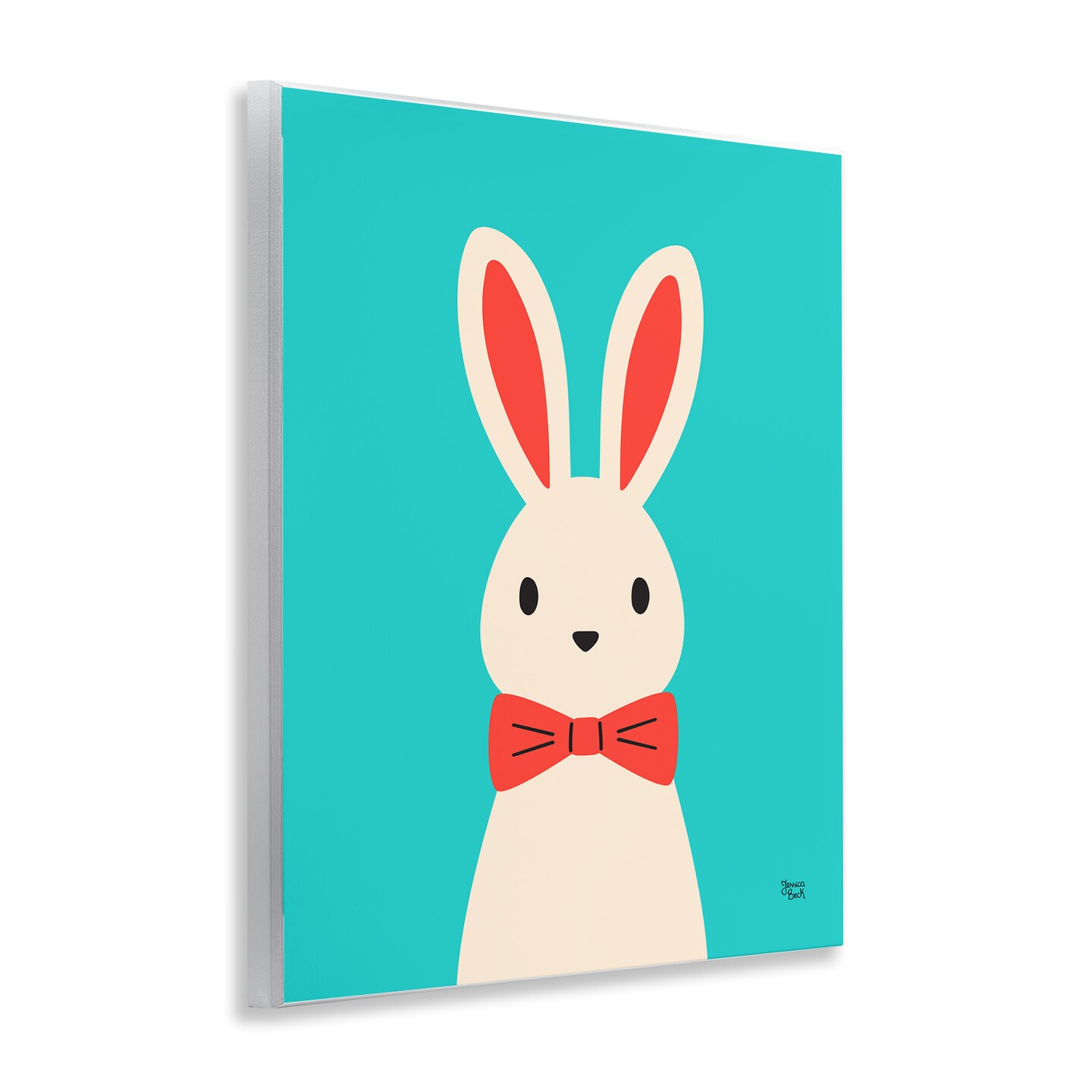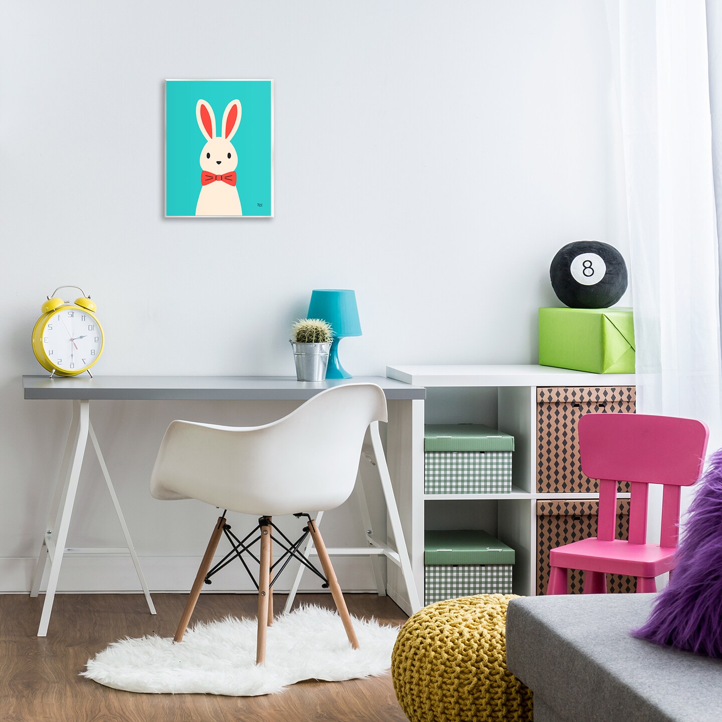 Stupell Industries Rabbit & Bowtie on Turquoise Wall Plaque Art Design by Jessica Beck