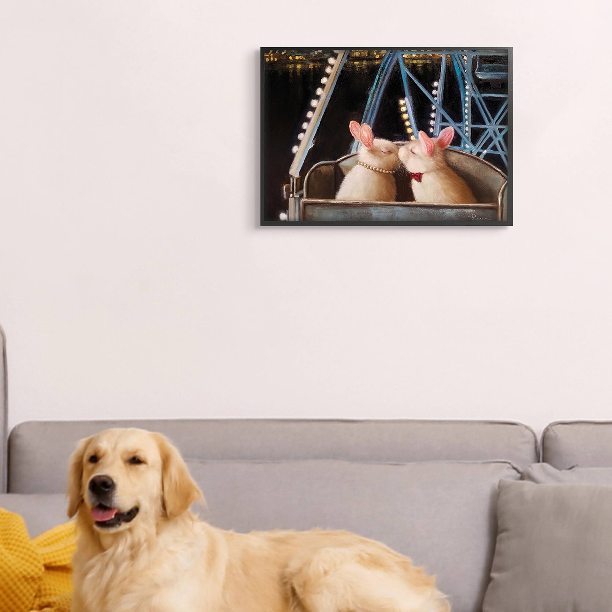 Stupell Industries Rabbit Couple Romantic Ferris Wheel Kiss in Black Frame Wall Art