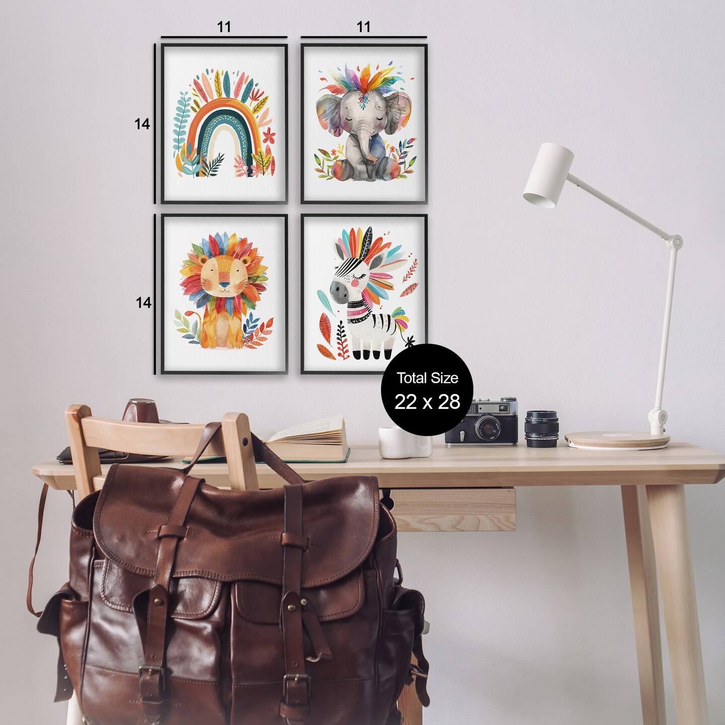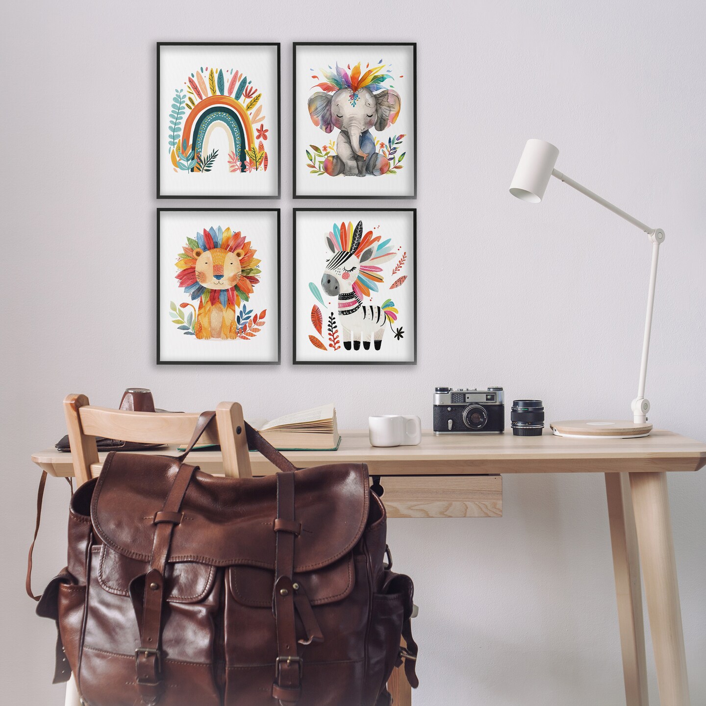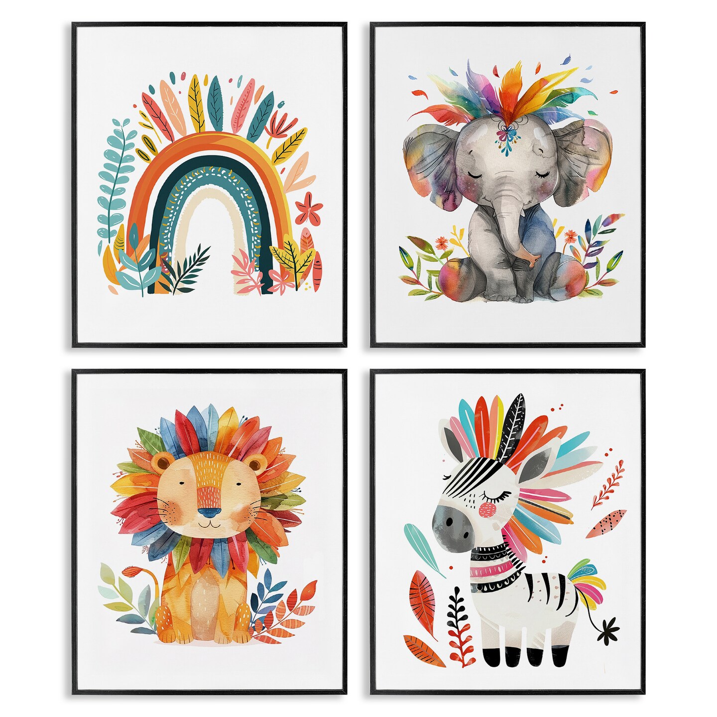 Stupell Industries Rainbow Feather Animals 4pc Framed Giclee Wall Art Set Design by LSR Design Studio
