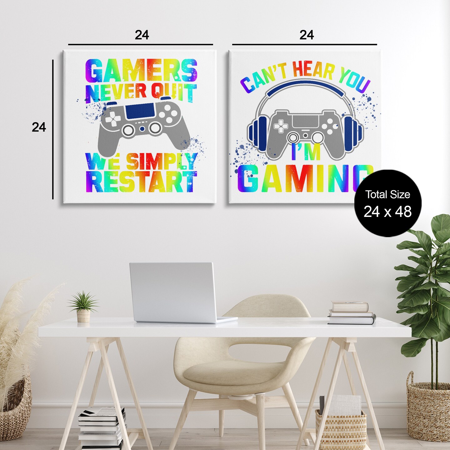 Stupell Industries Rainbow Retro Gaming Phrases 2pc Canvas Set, design by Kim Allen