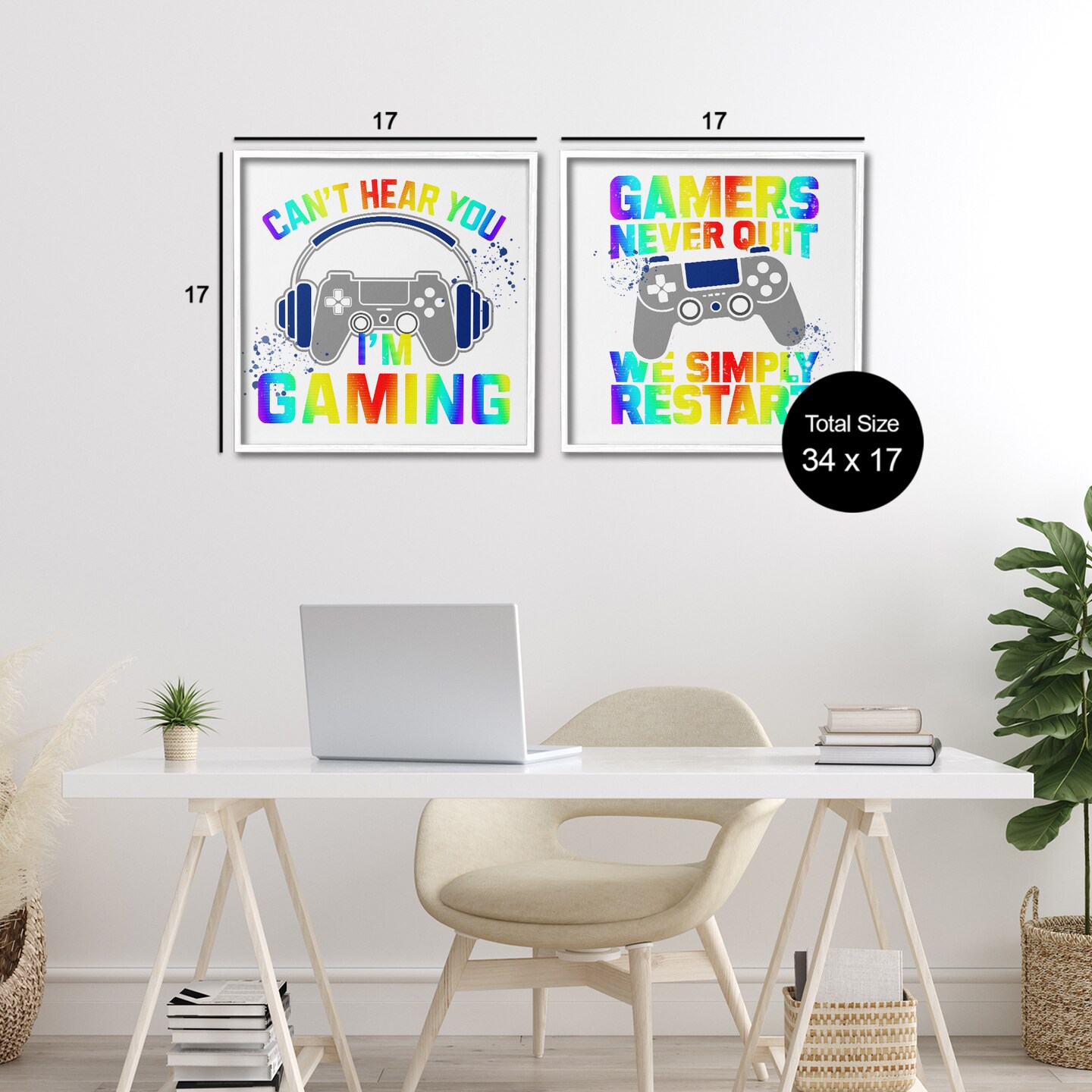 Stupell Industries Rainbow Retro Gaming Phrases 2pc Framed Giclee Set, design by Kim Allen