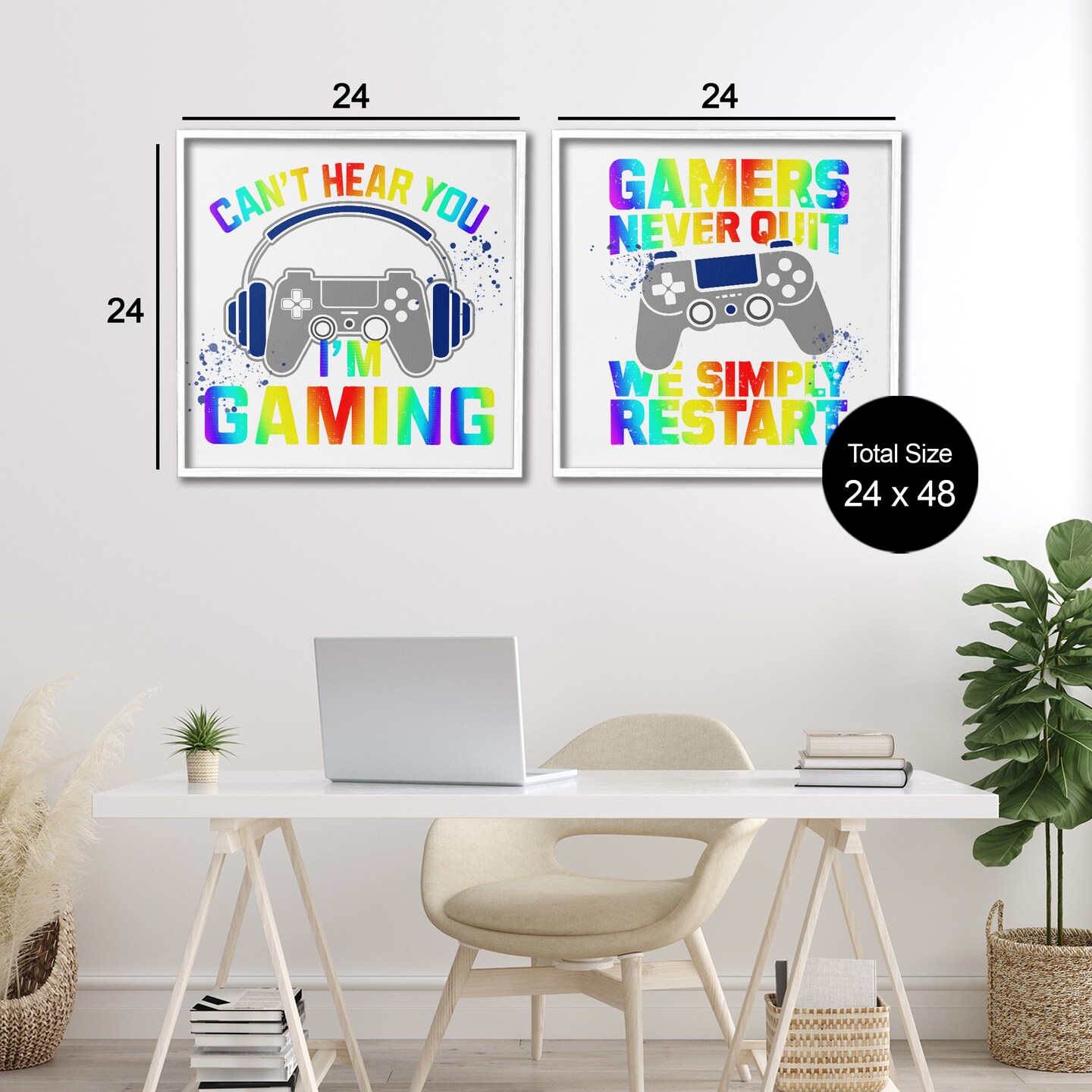 Stupell Industries Rainbow Retro Gaming Phrases 2pc Framed Giclee Set, design by Kim Allen