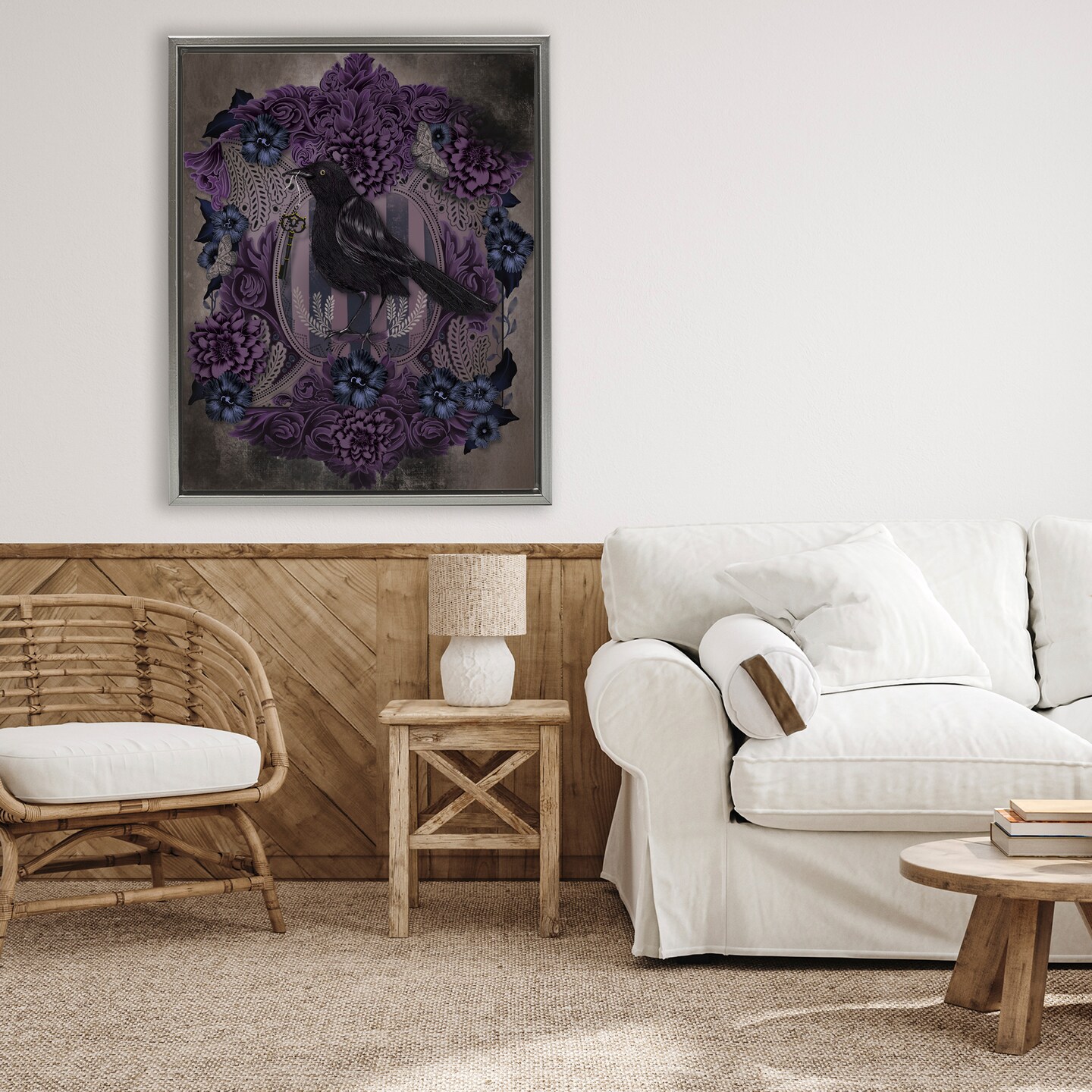 Stupell Industries Raven with Gothic Florals Floating Frame, design by Lori Mosley