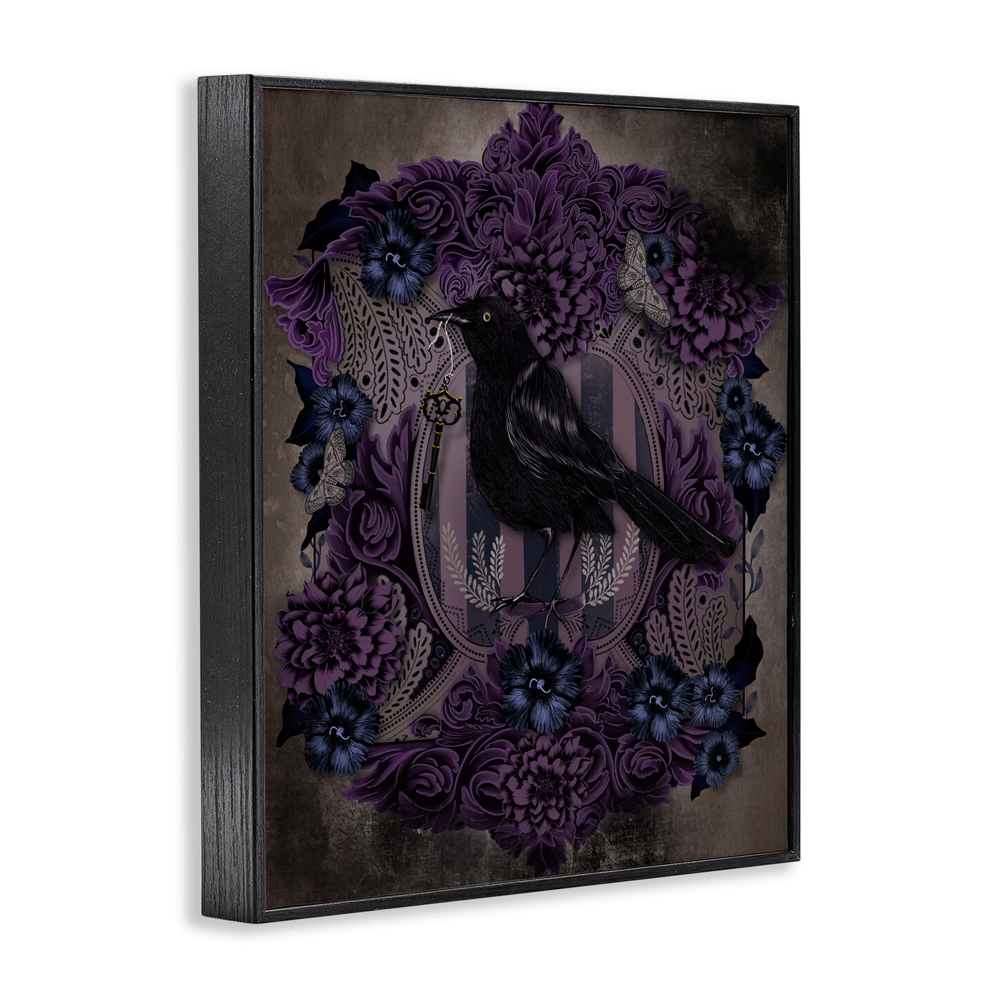 Stupell Industries Raven with Gothic Florals Framed Giclee, design by Lori Mosley
