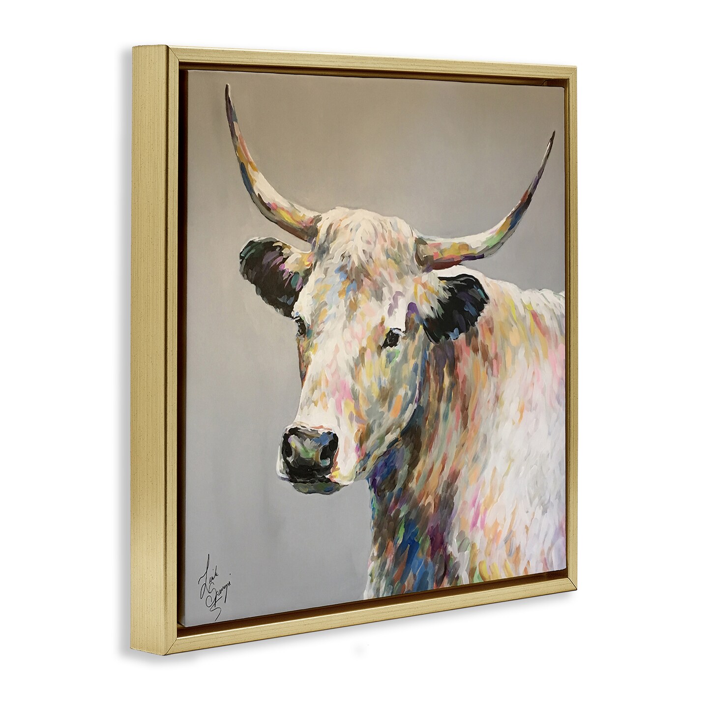 Stupell Industries Raymond White Cow Painting Floating Frame By Linda Sperruzzi