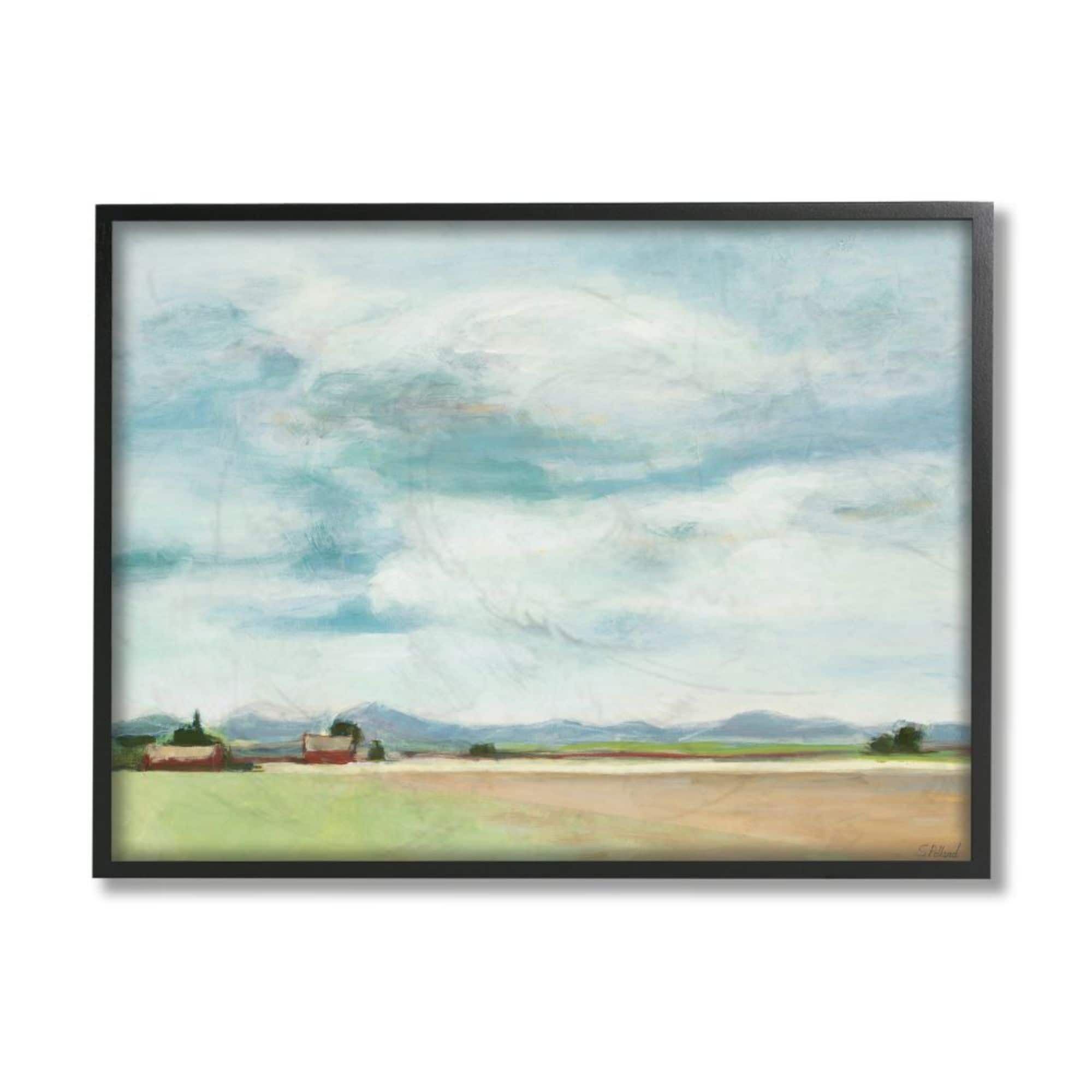 Stupell Industries Red Barn Farm Landscape Soft Blue Sky Framed Wall Art