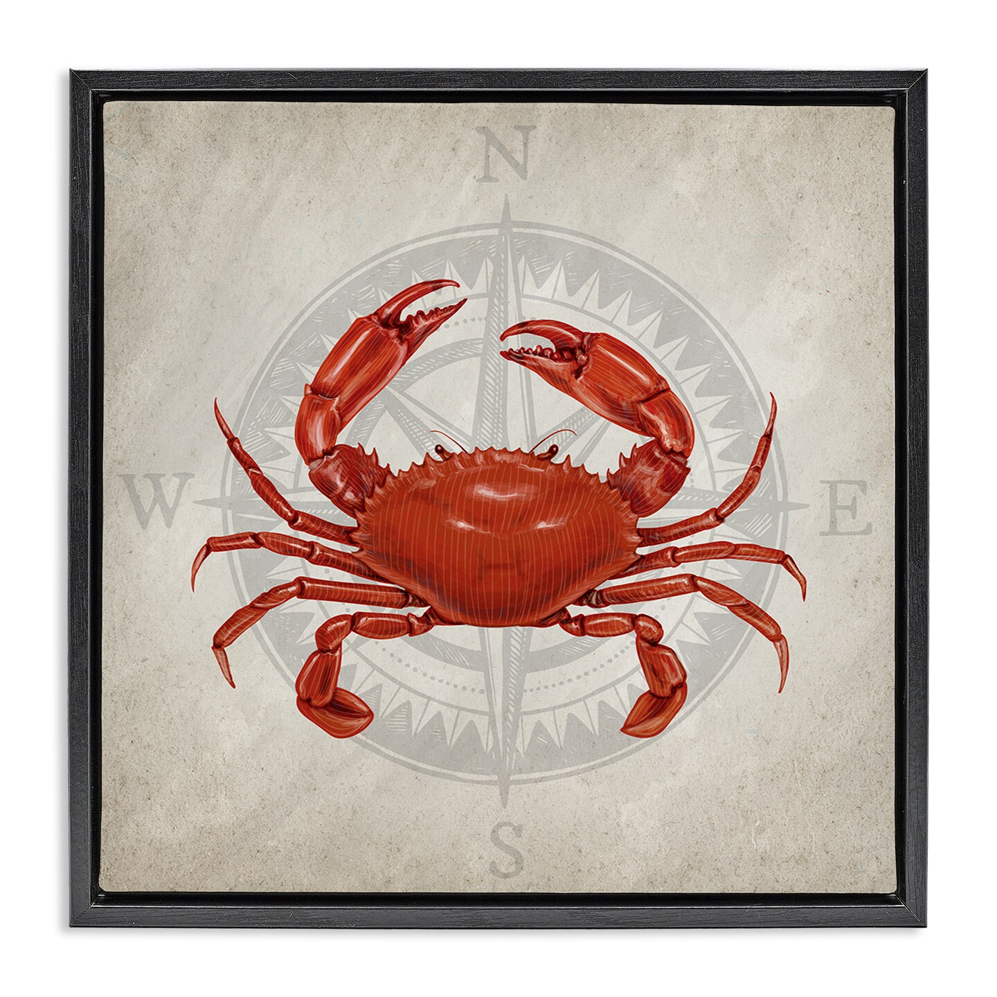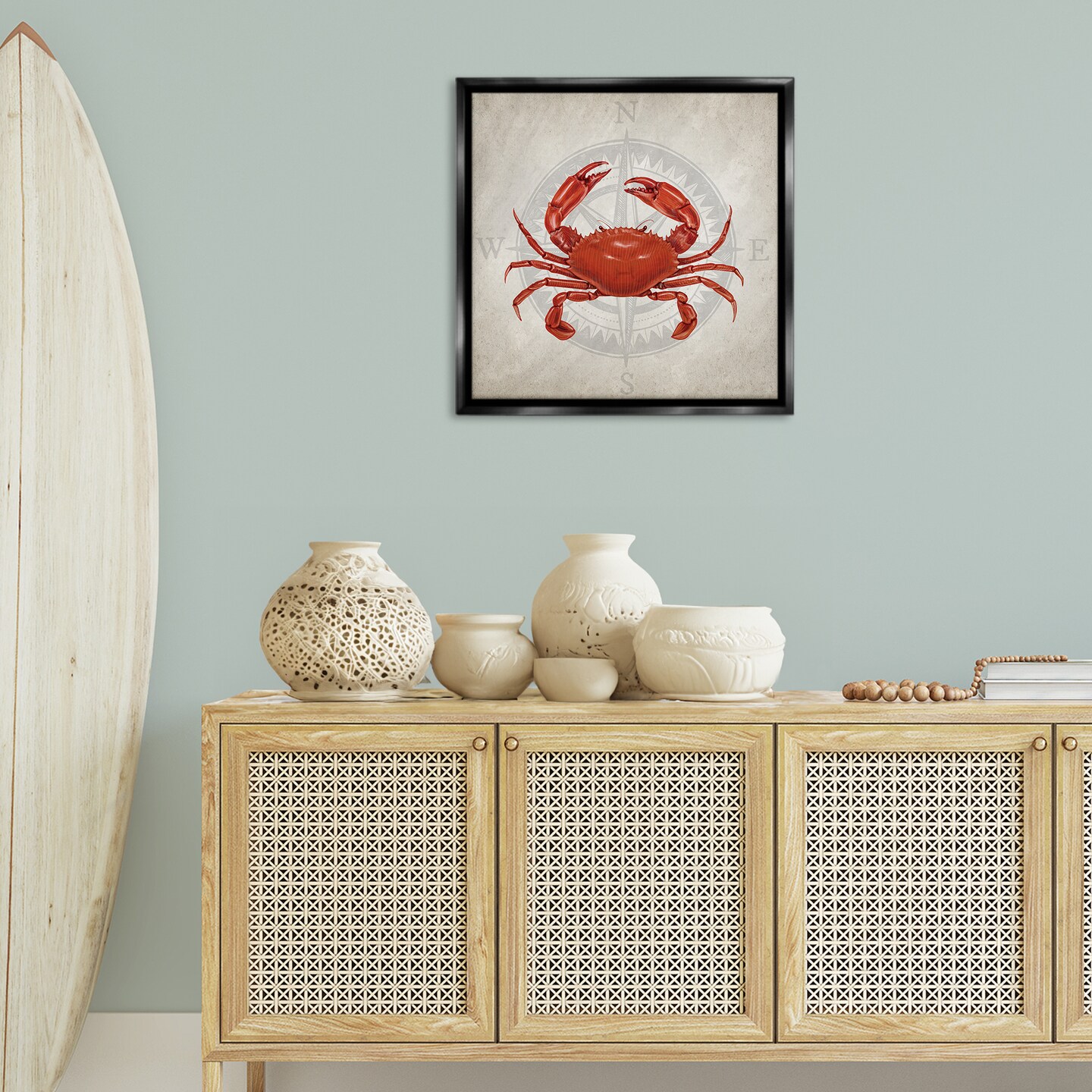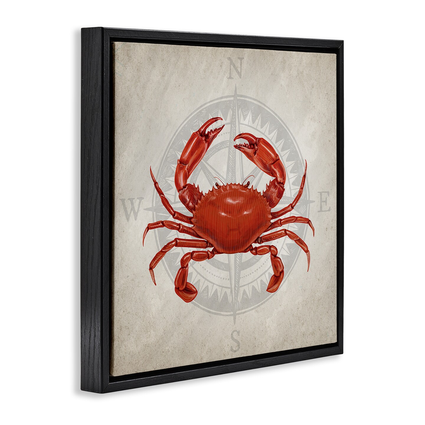Stupell Industries Red Crab over Compass Floating Frame By Kim Allen