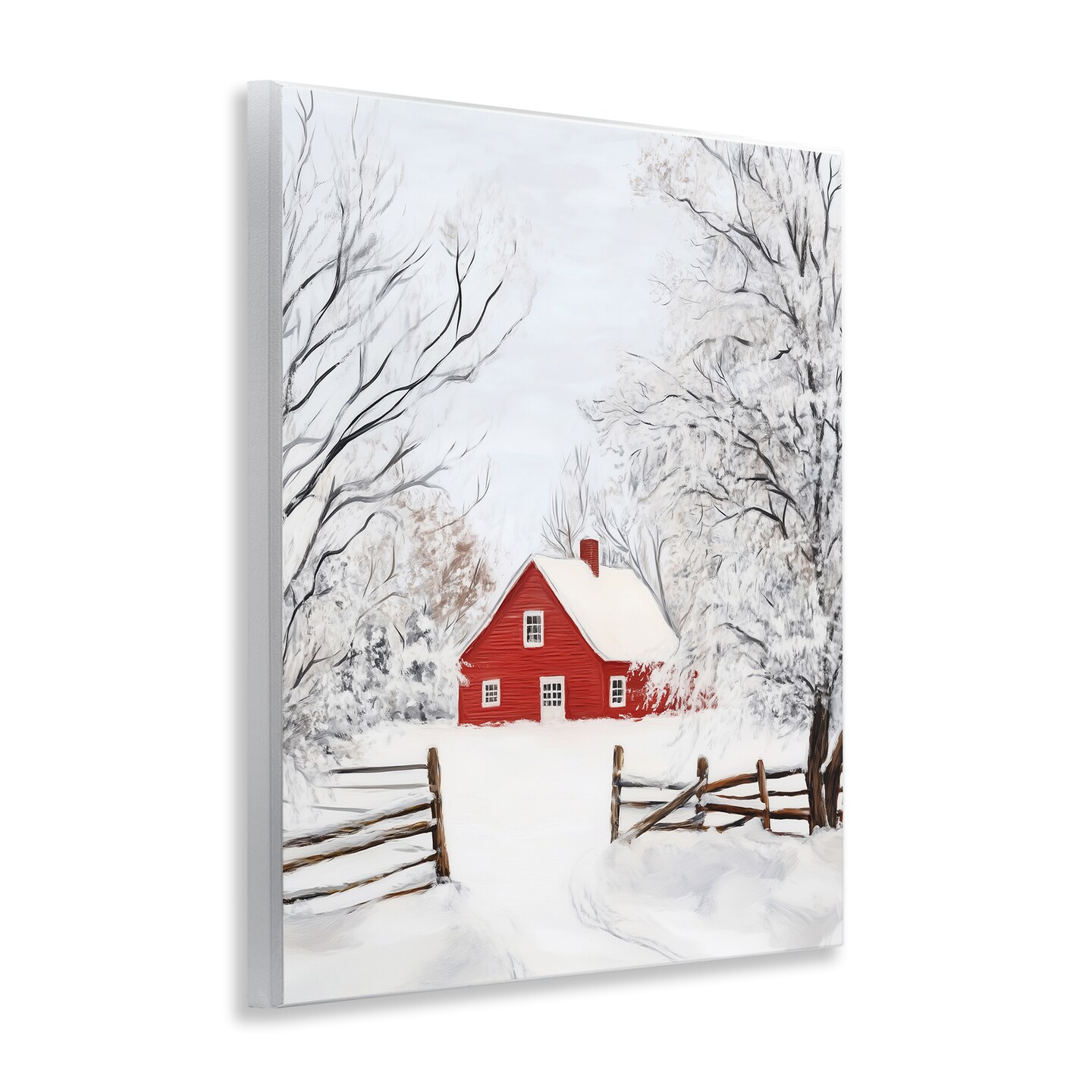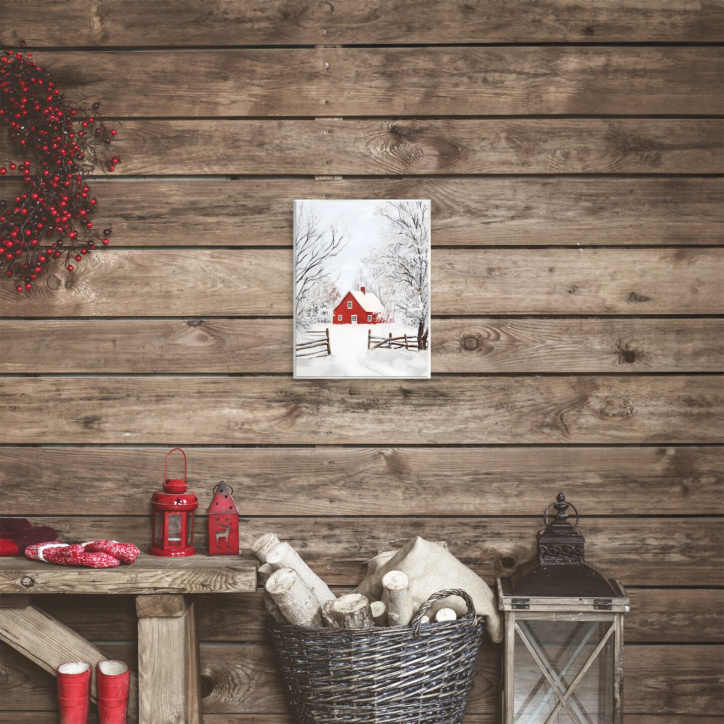Stupell Industries Red Farmhouse in Snow Wall Plaque, design by Arlington Prints