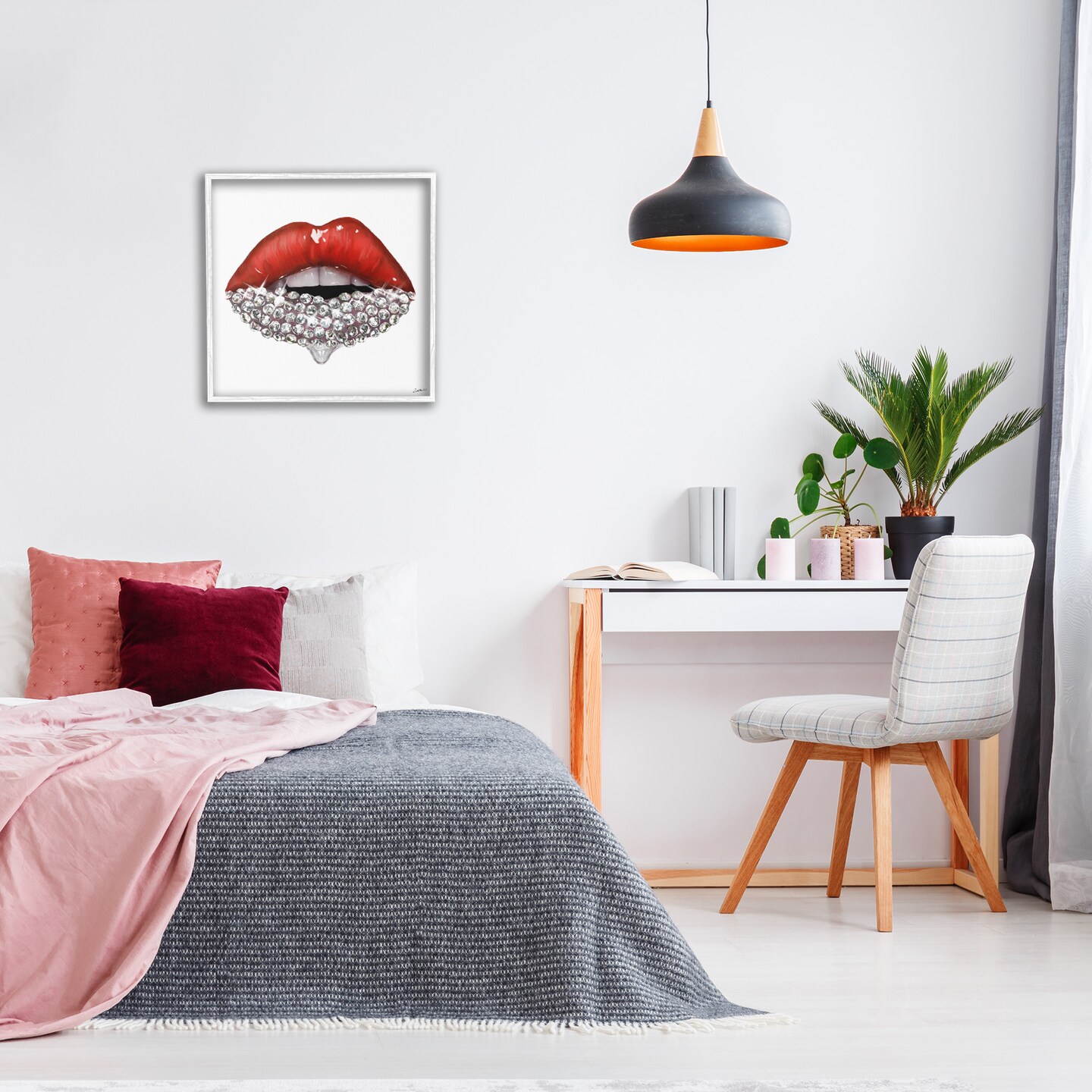 Stupell Industries Red Glam Lips with Gemstones Framed Giclee Art