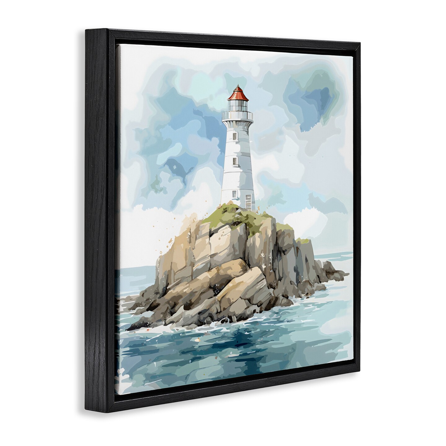 Stupell Industries Red Roof Lighthouse Black Framed Floater Canvas Wall Art, design by LSR Design Studio