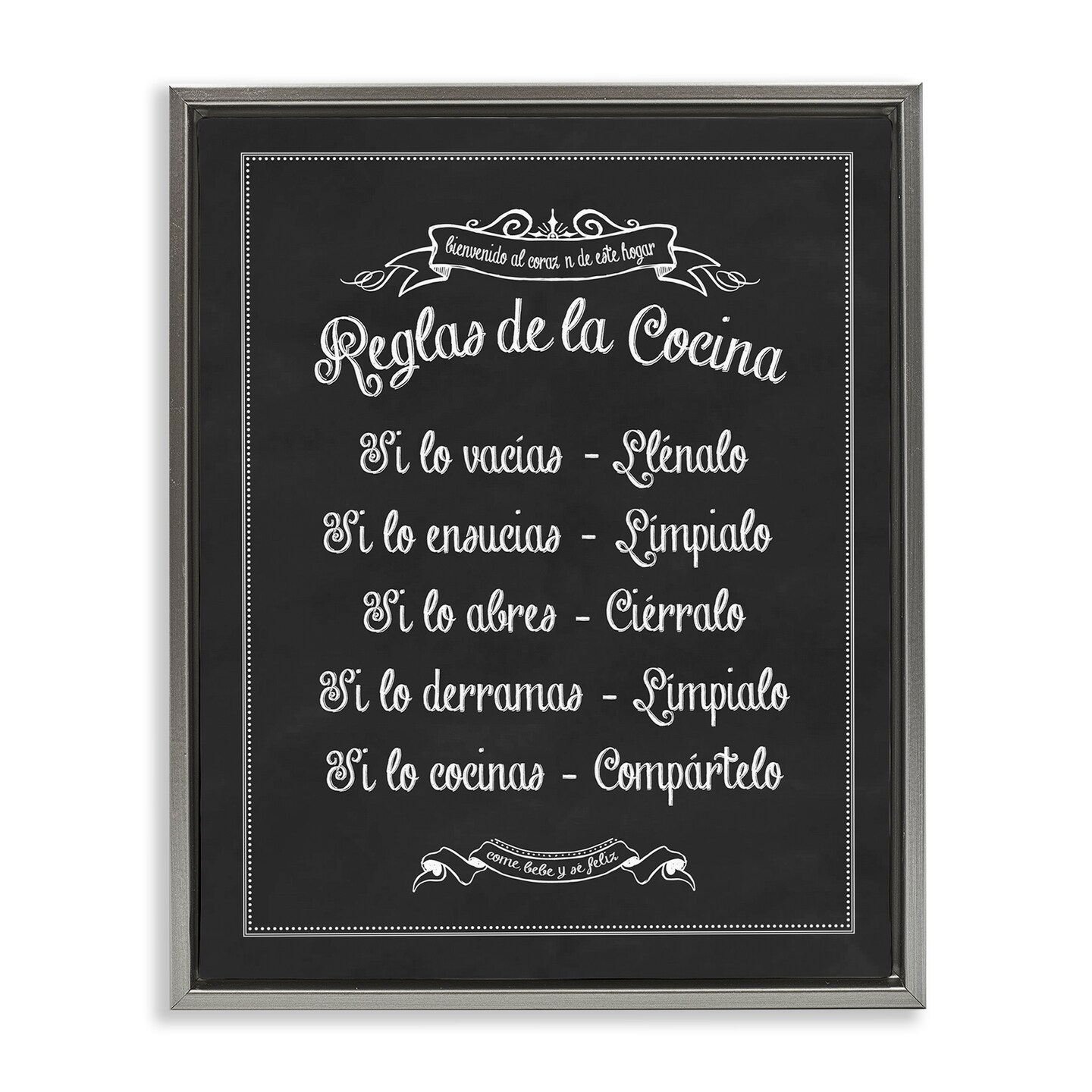 Stupell Industries Reglas de la Cocina Framed Floater Canvas Wall Art