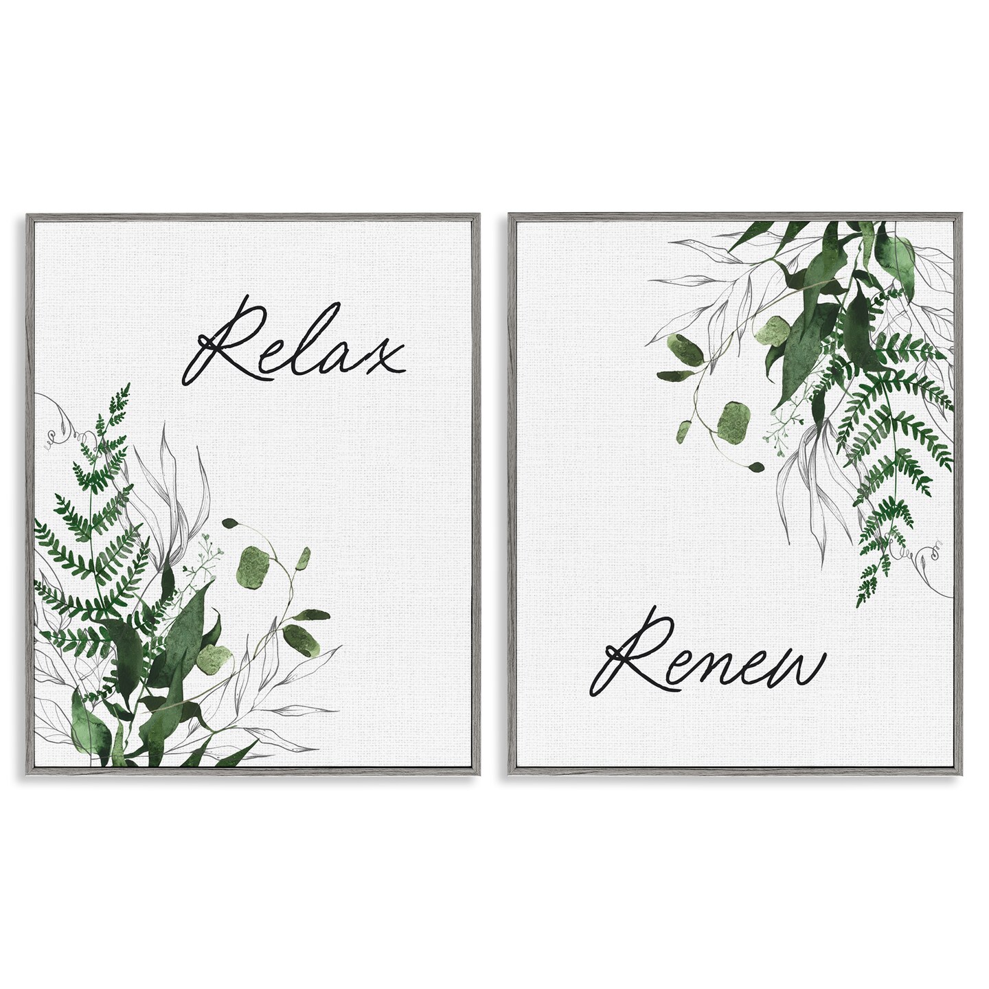 Stupell Industries Relax Renew Botanical Leaves 2pc Framed Giclee Set, design by Lettered and Lined
