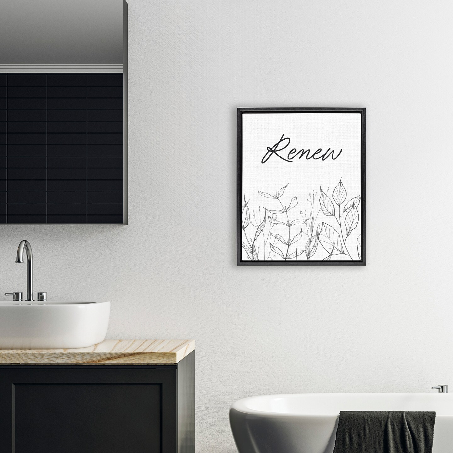 Stupell Industries Renew with Leaf Outlines Floating Frame, design by Lettered and Lined
