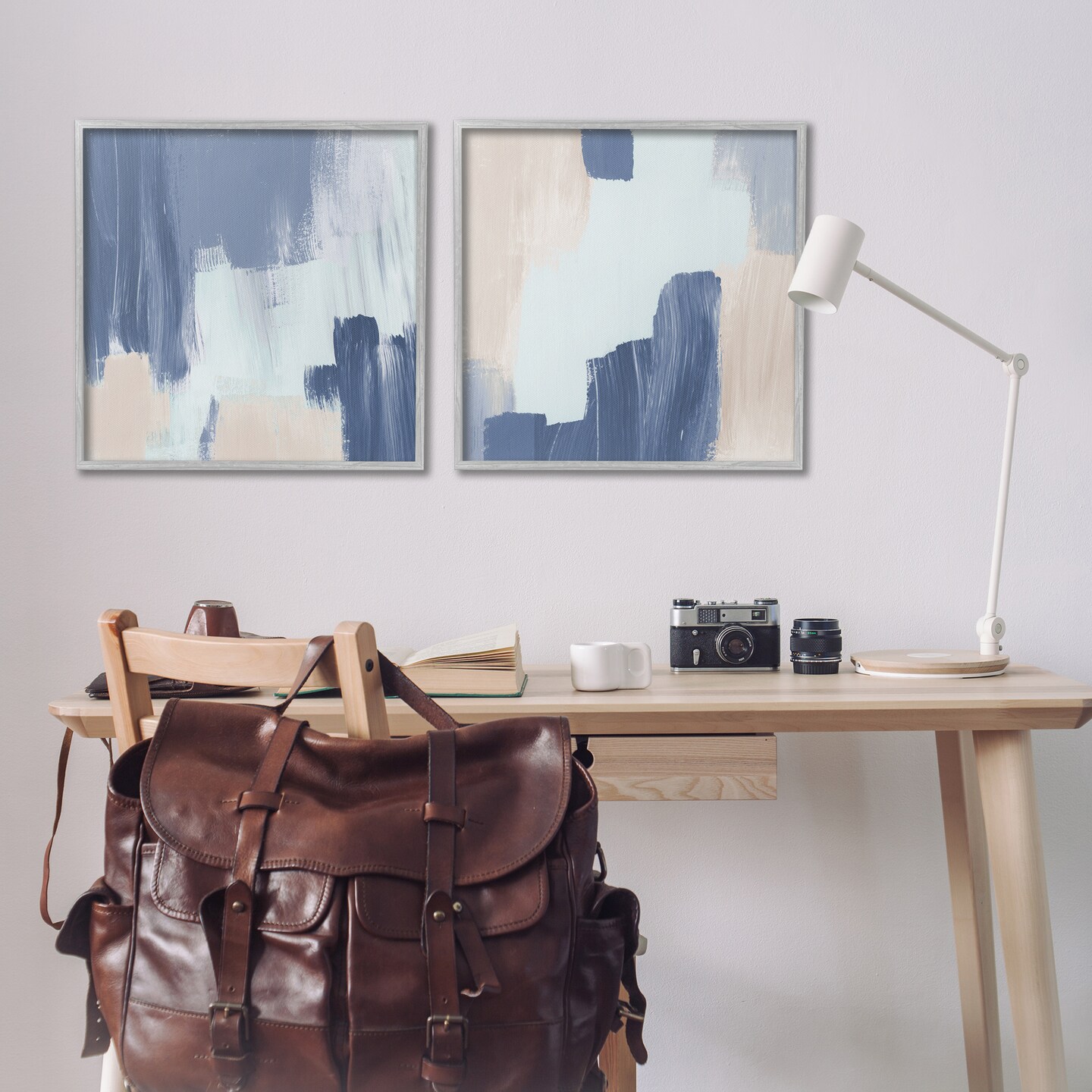 Stupell Industries Restless Blue Brush Strokes 2 pc Framed Giclee Wall Art Set Design by Lucille Price