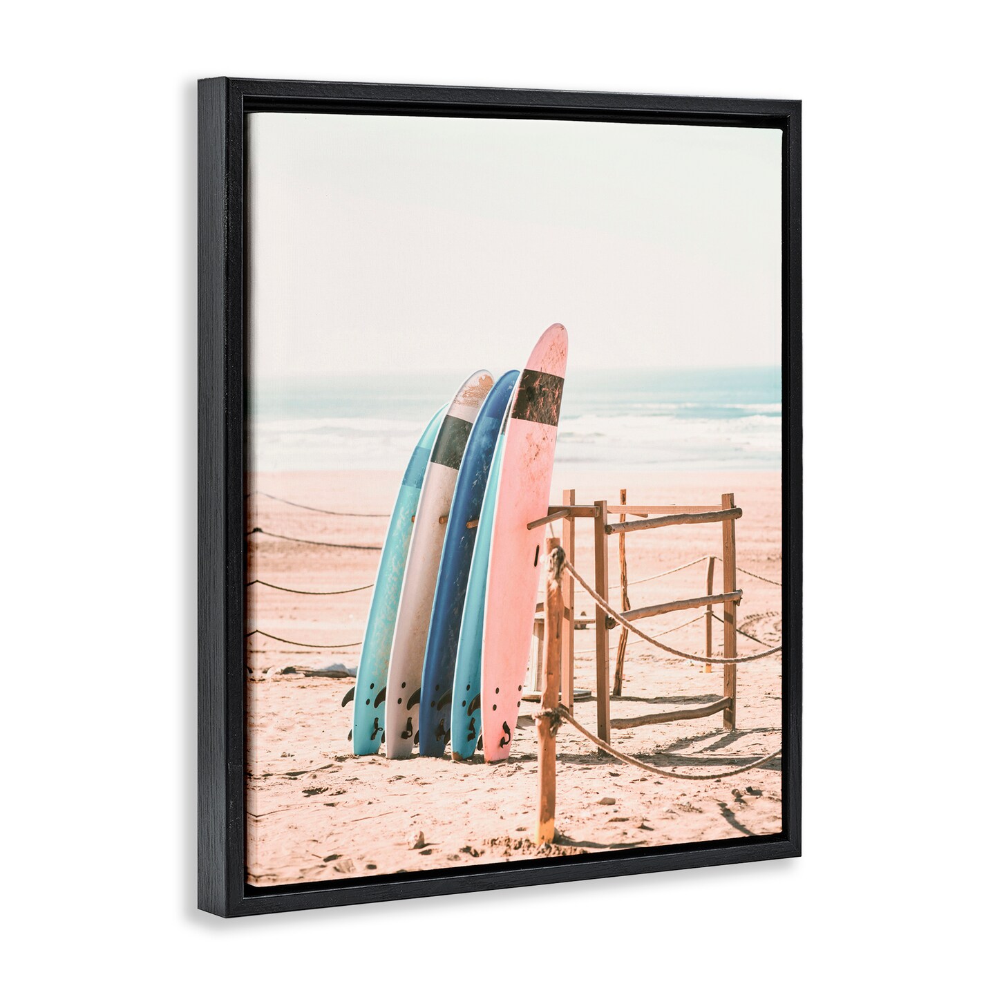 Stupell Industries Retro Beach Surfboards Leaning Black Framed Floater Canvas Wall Art, design by Sisi and Seb