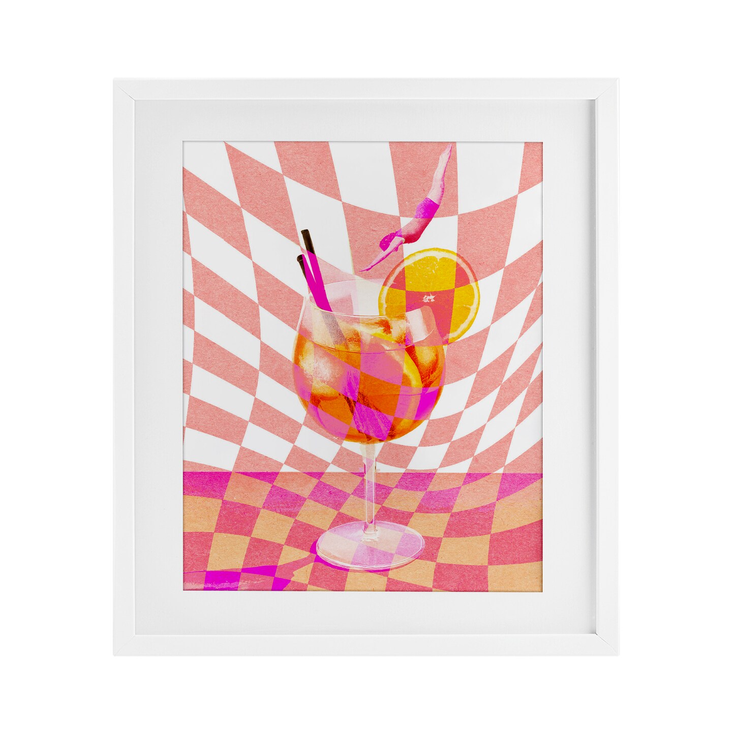 Stupell Industries Retro Checkered Summer Cocktail Framed Print Under Glass, design by Lil' Rue