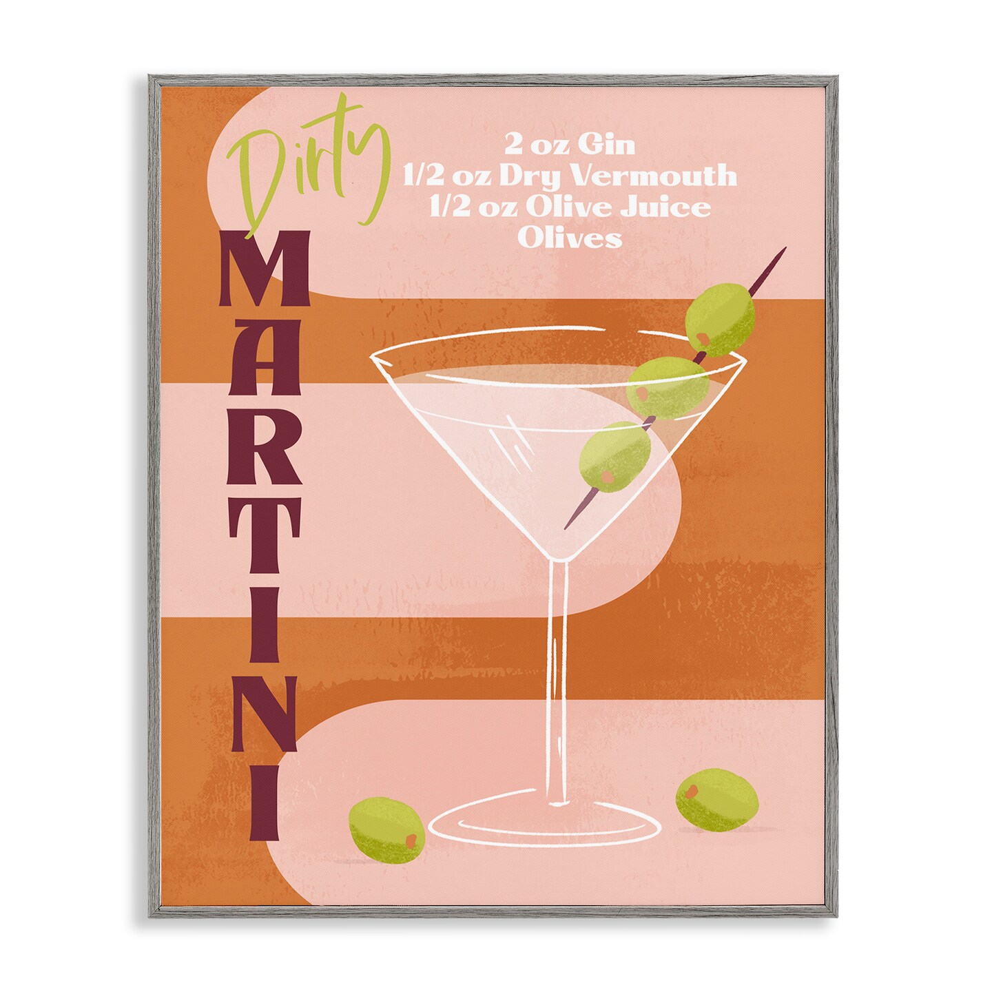 Stupell Industries Retro Dirty Martini Recipe Framed Giclee Wall Art Design by Deane Beesley