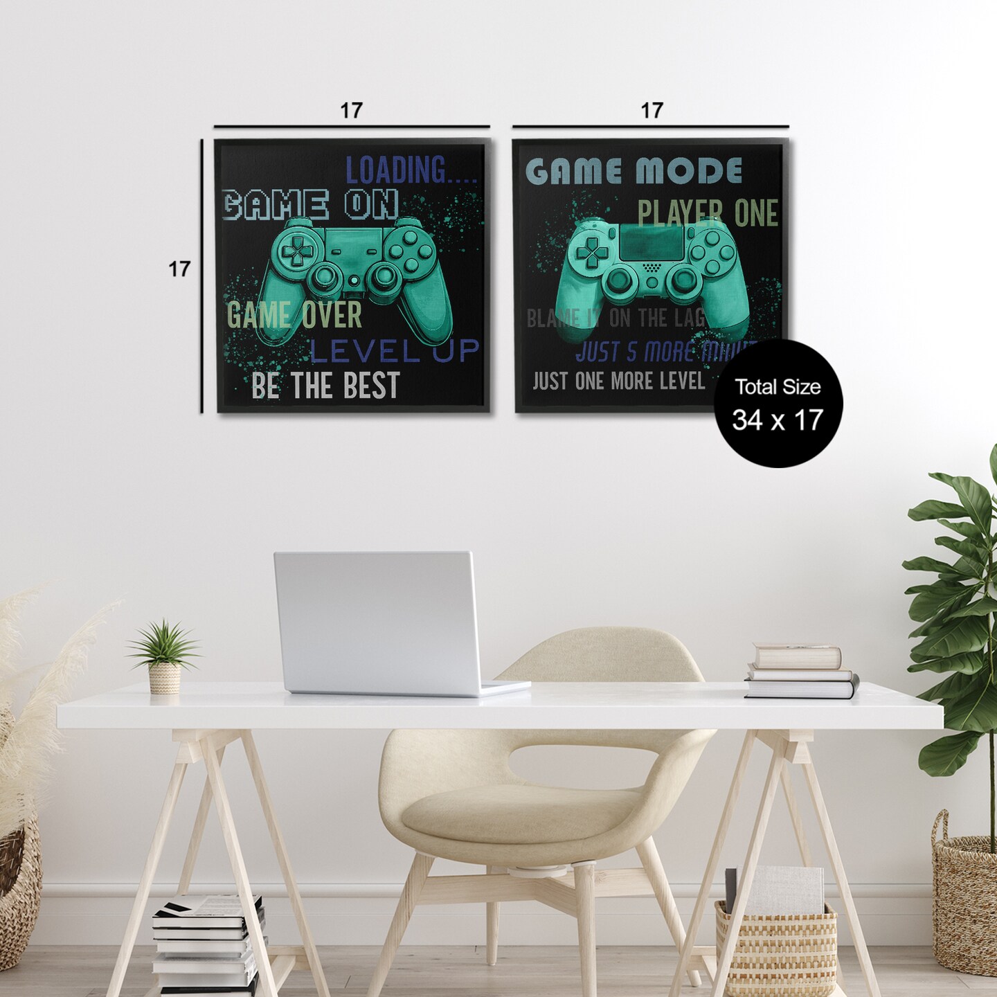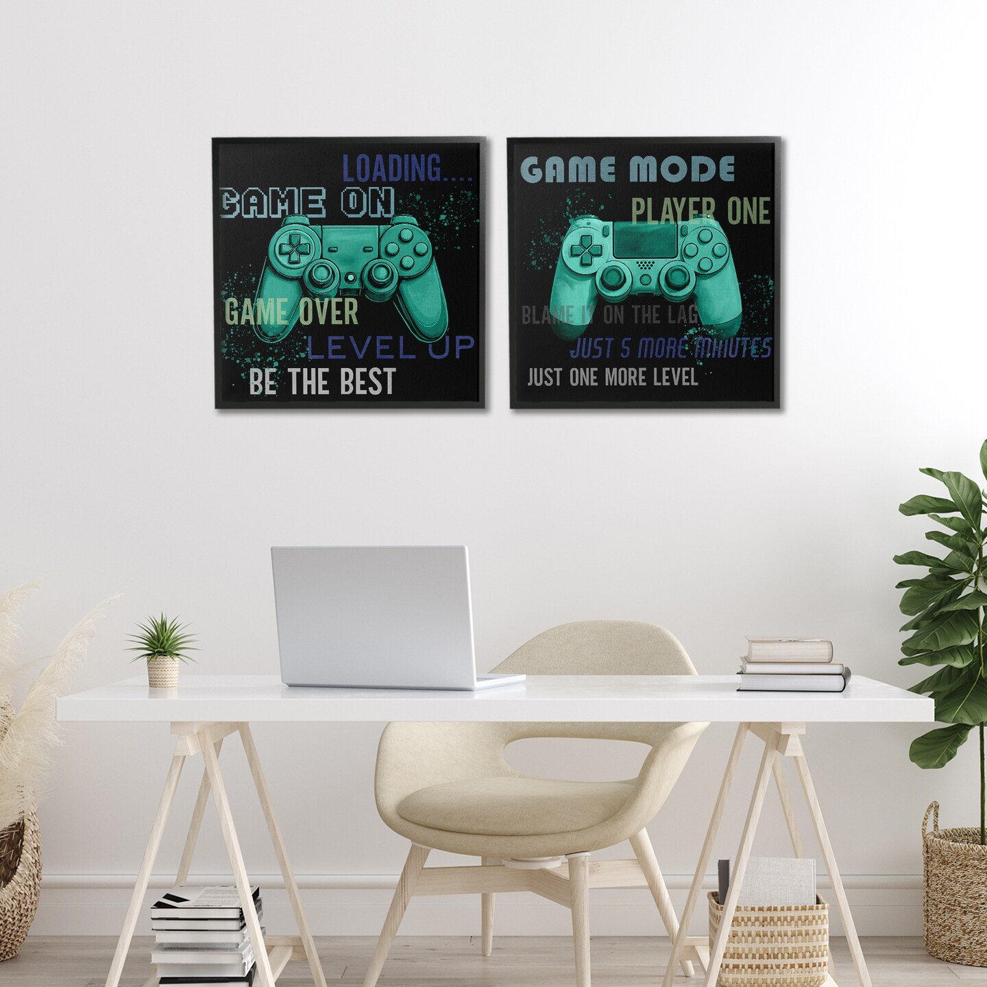 Stupell Industries Retro Gaming Phrases Controllers 2pc Framed Giclee Set, design by Kim Allen