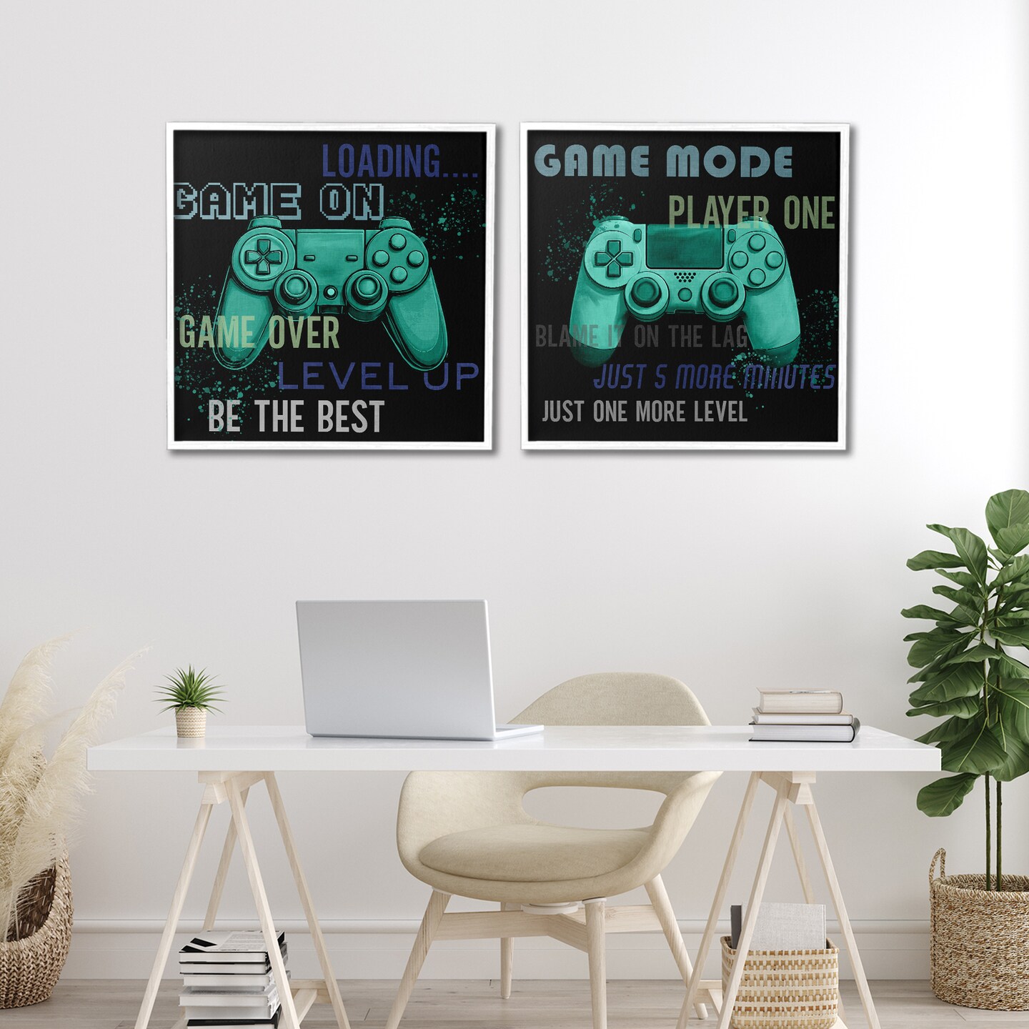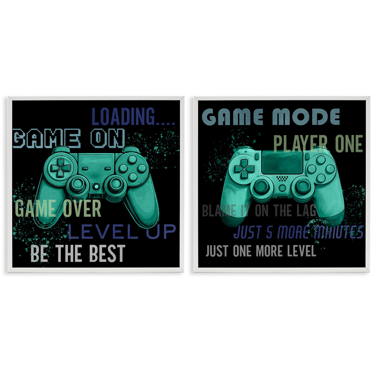 Stupell Industries Retro Gaming Phrases Controllers 2pc Framed Giclee Set, design by Kim Allen
