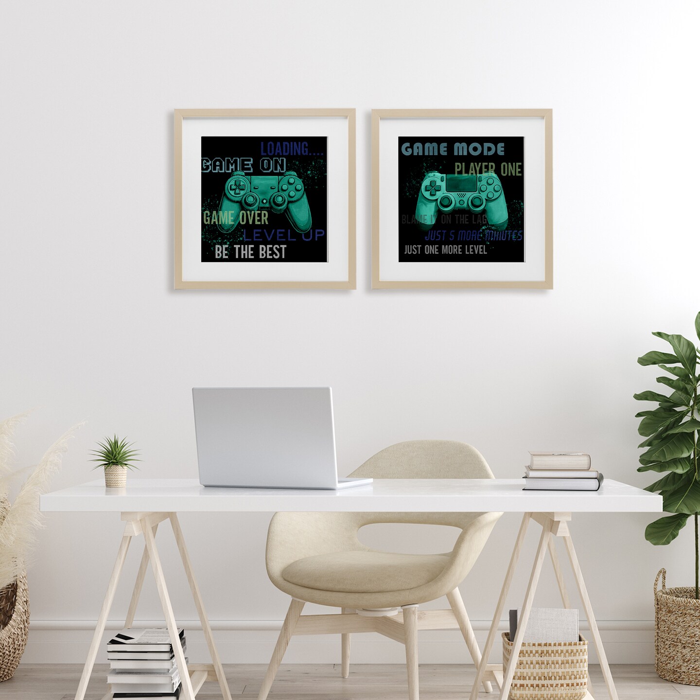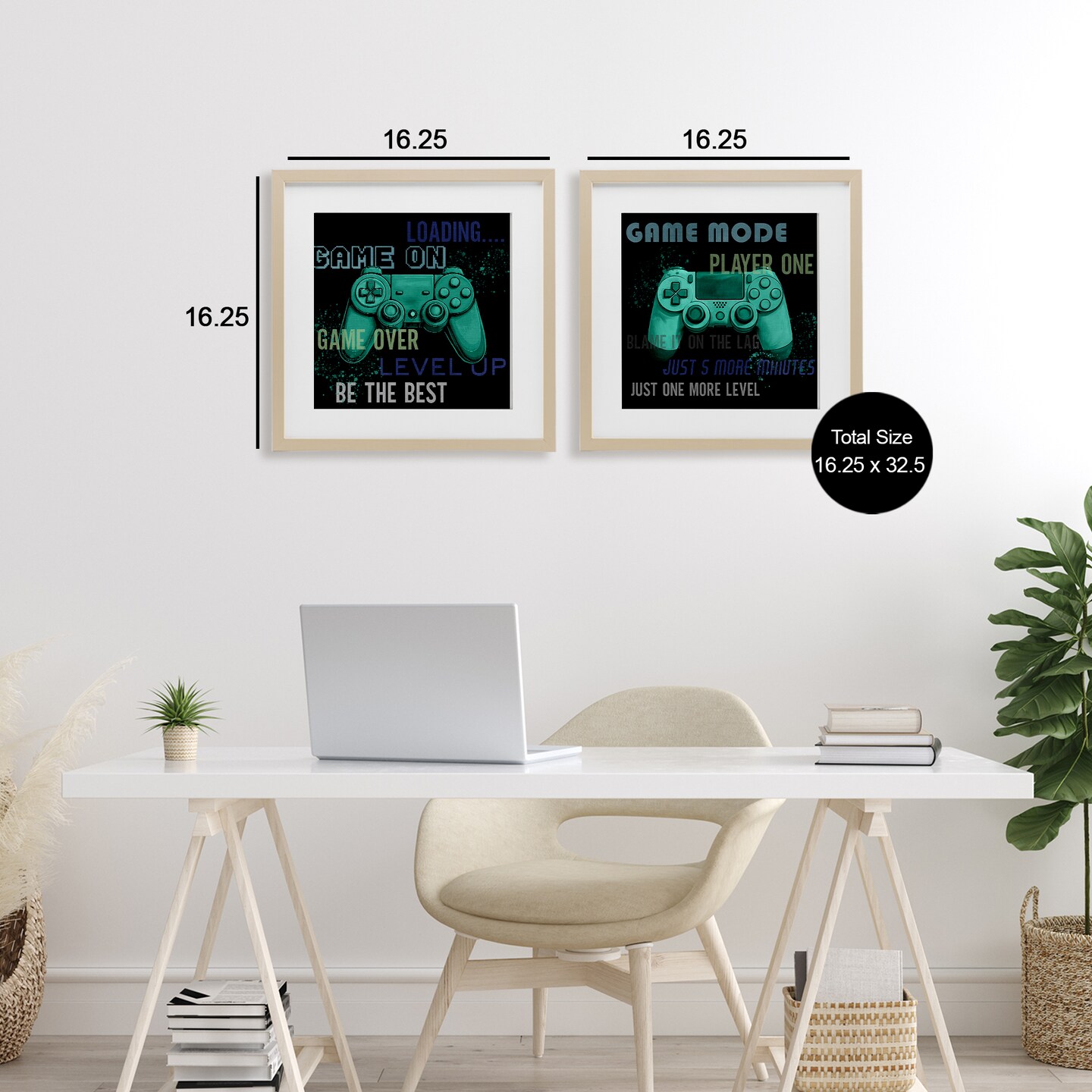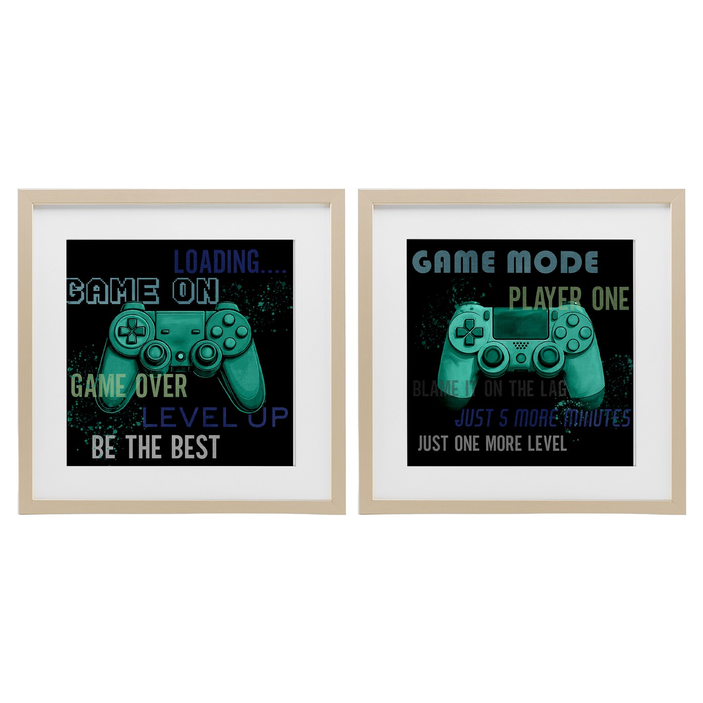Stupell Industries Retro Gaming Phrases Controllers 2pc Framed Print Under Glass Set, design by Kim Allen