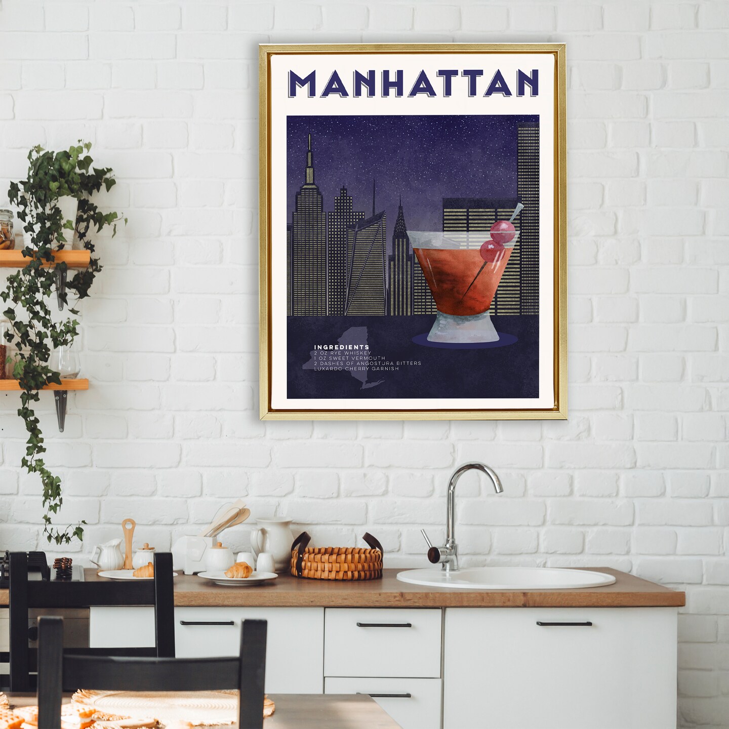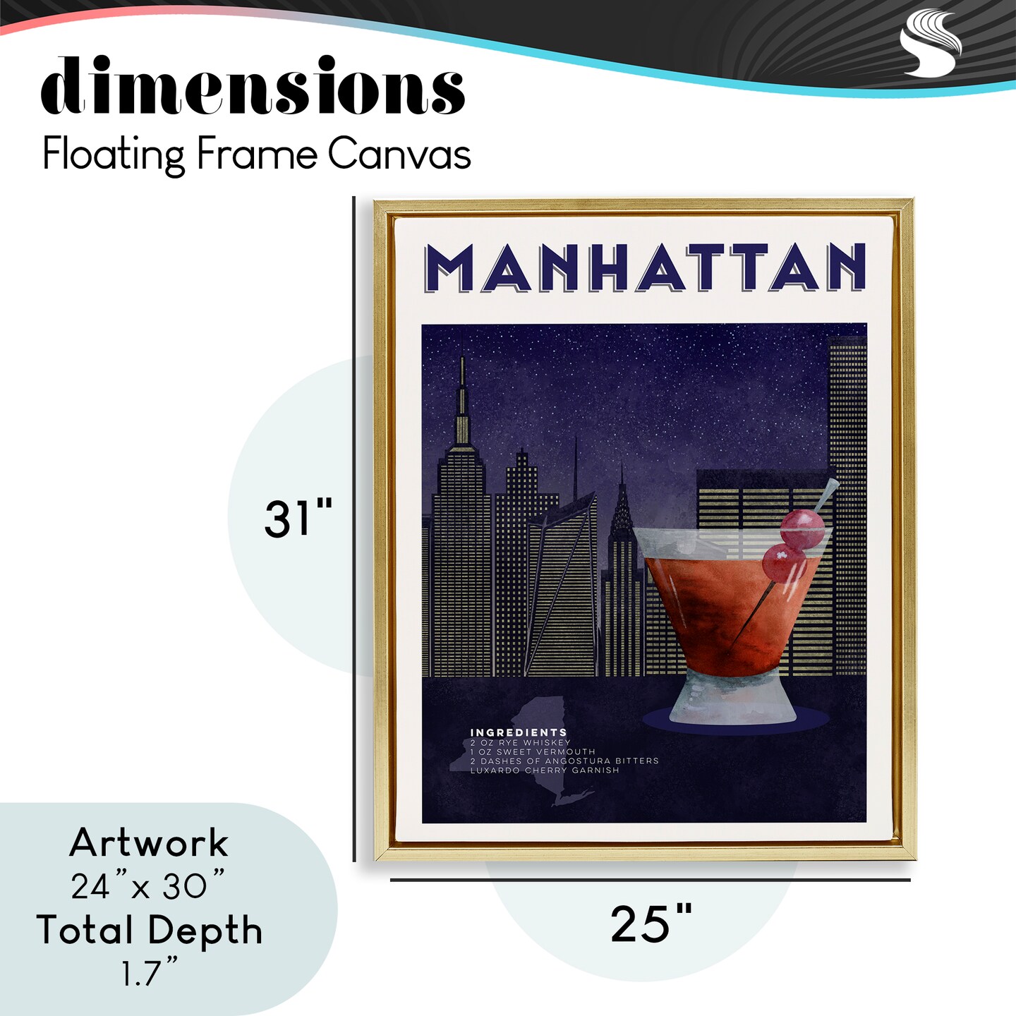 Stupell Industries Retro Manhattan Cocktail Cityscape Floating Frame, design by Brett Blumenthal