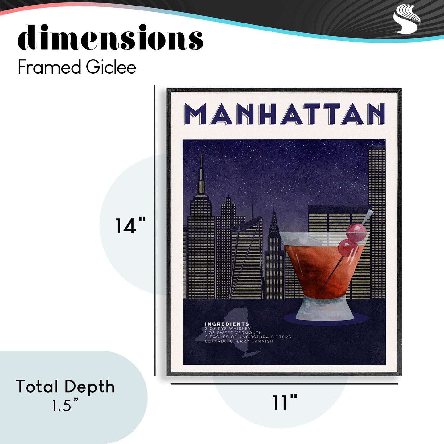 Stupell Industries Retro Manhattan Cocktail Cityscape Framed Giclee, design by Brett Blumenthal