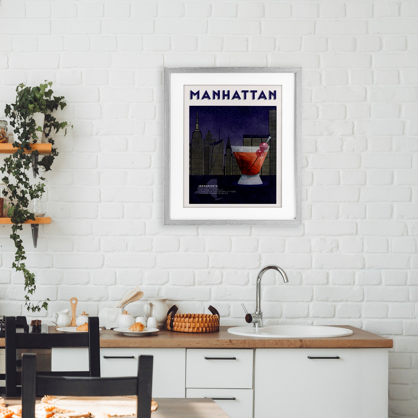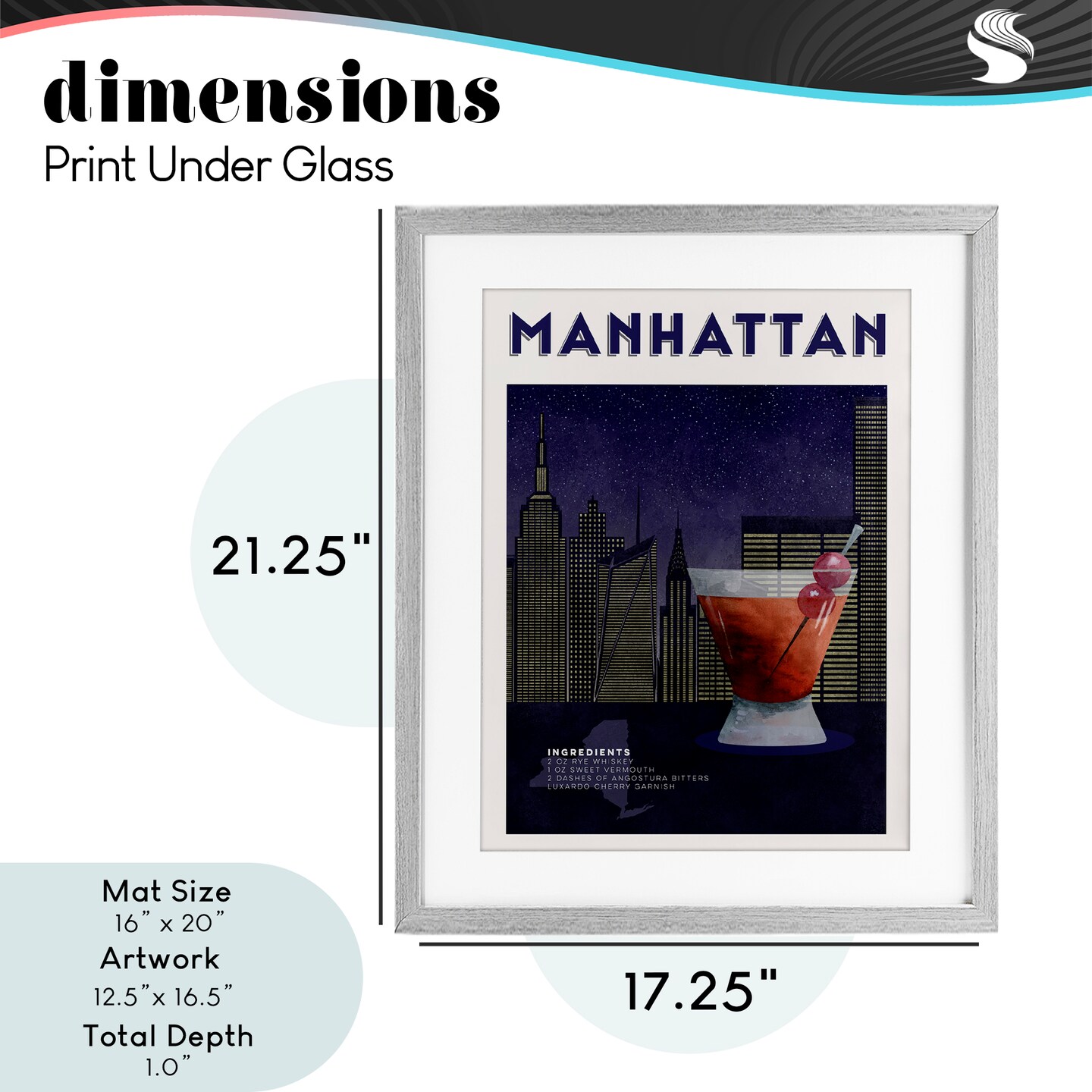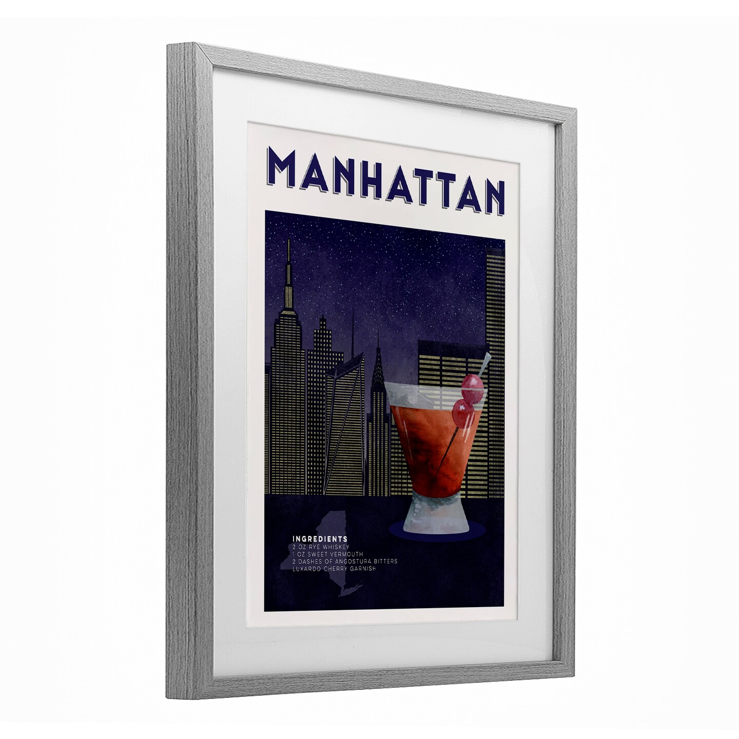 Stupell Industries Retro Manhattan Cocktail Cityscape Framed Print Under Glass, design by Brett Blumenthal