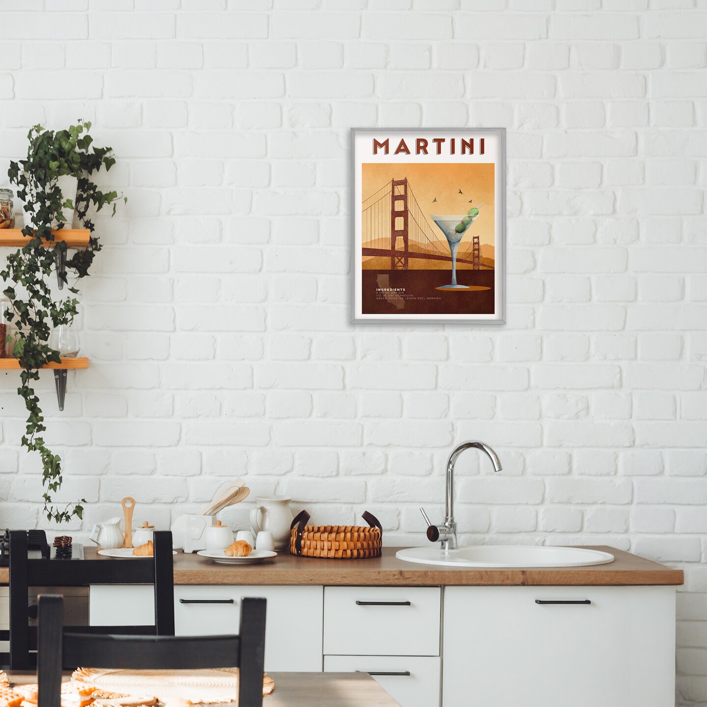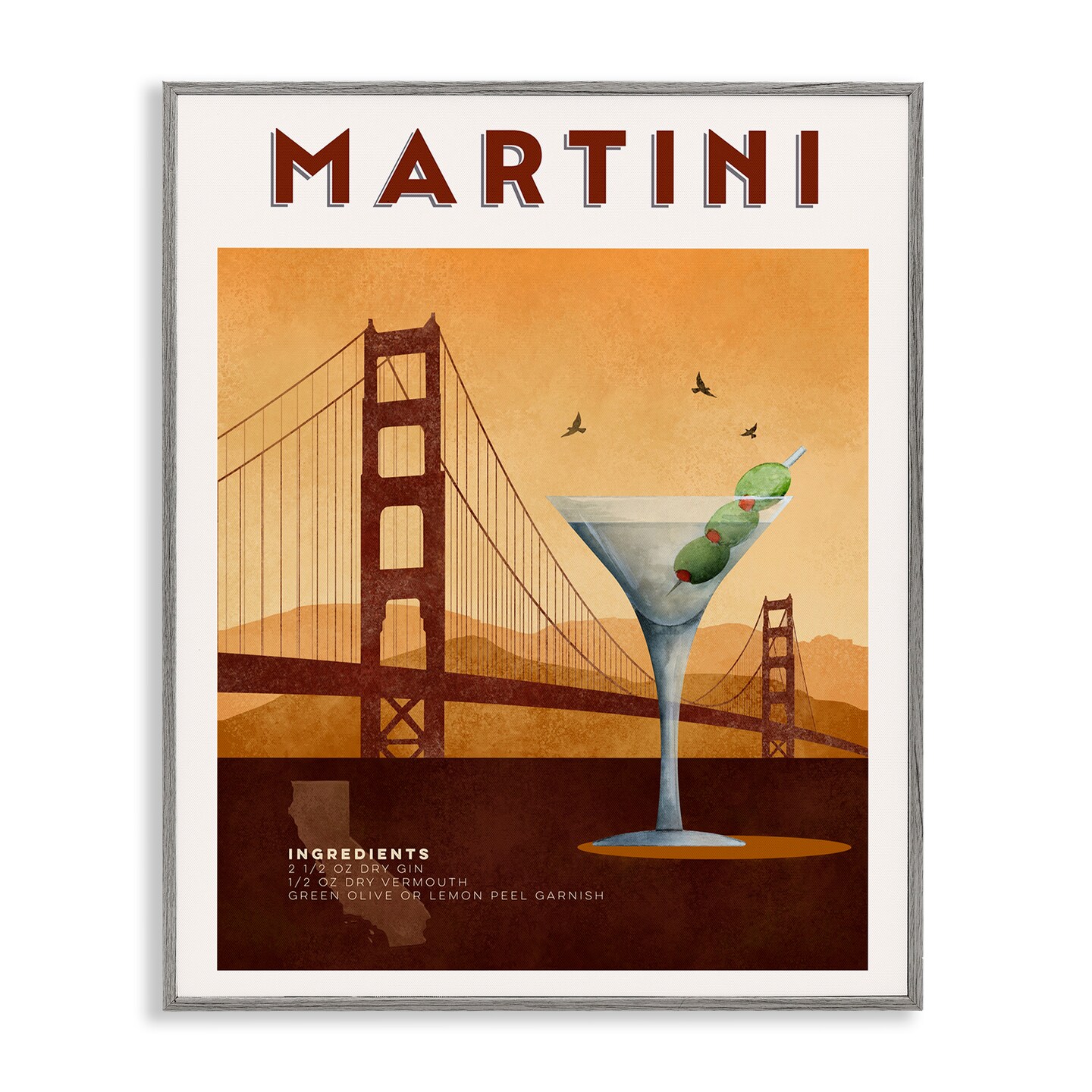 Stupell Industries Retro Martini & Bridge View Framed Giclee, design by Brett Blumenthal