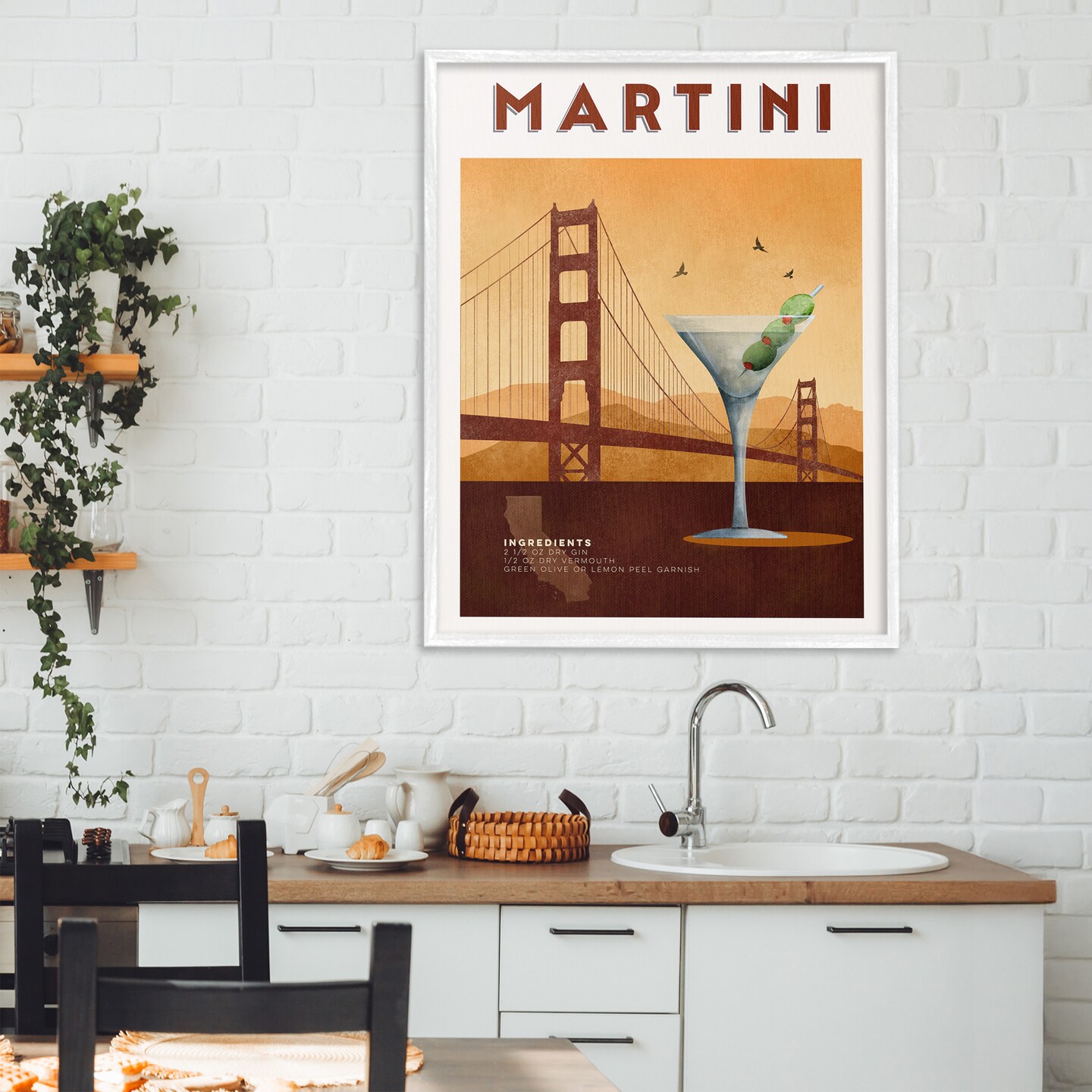 Stupell Industries Retro Martini & Bridge View Framed Giclee, design by Brett Blumenthal