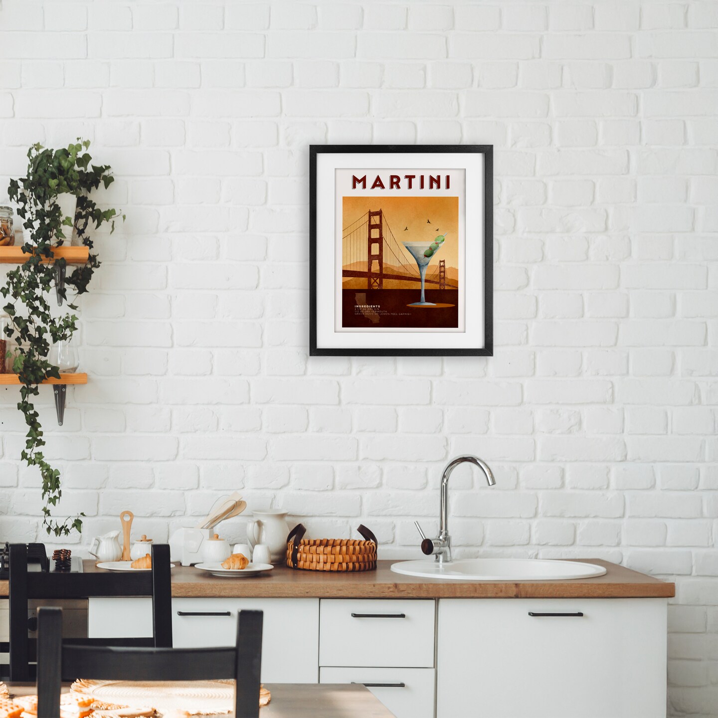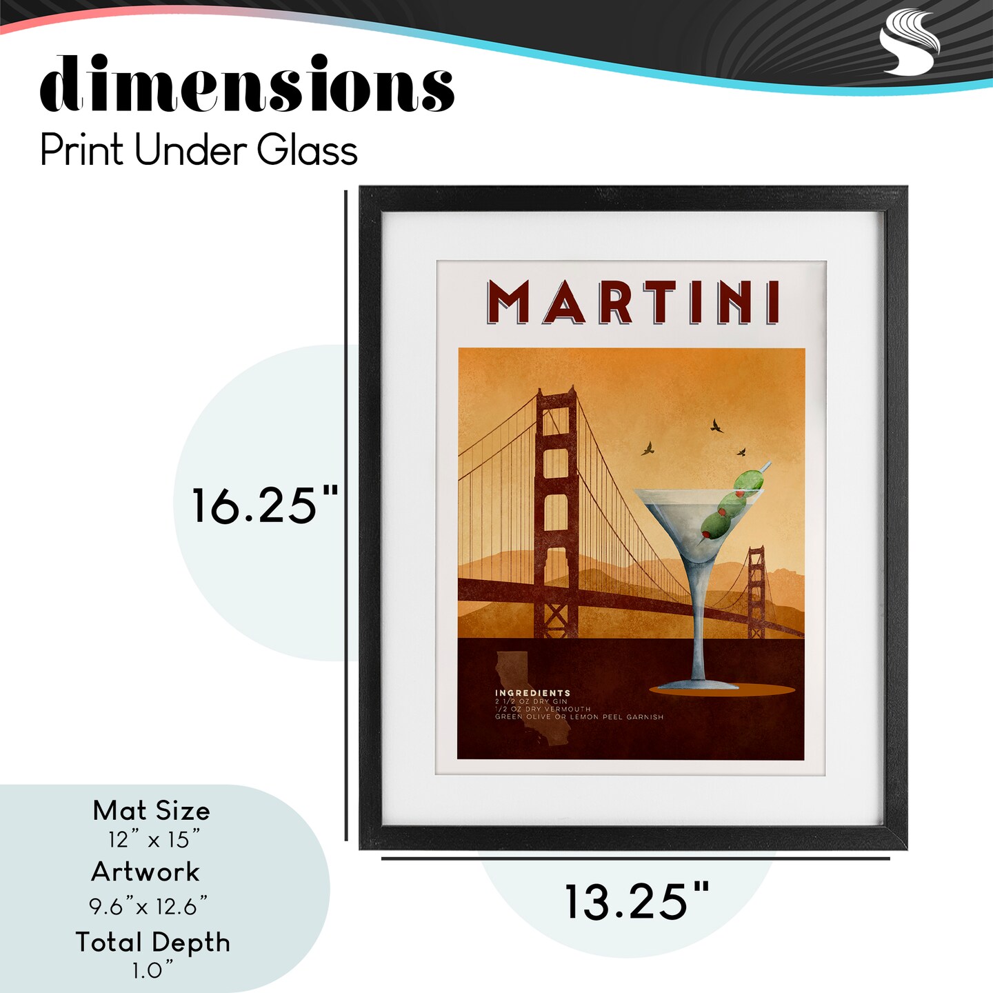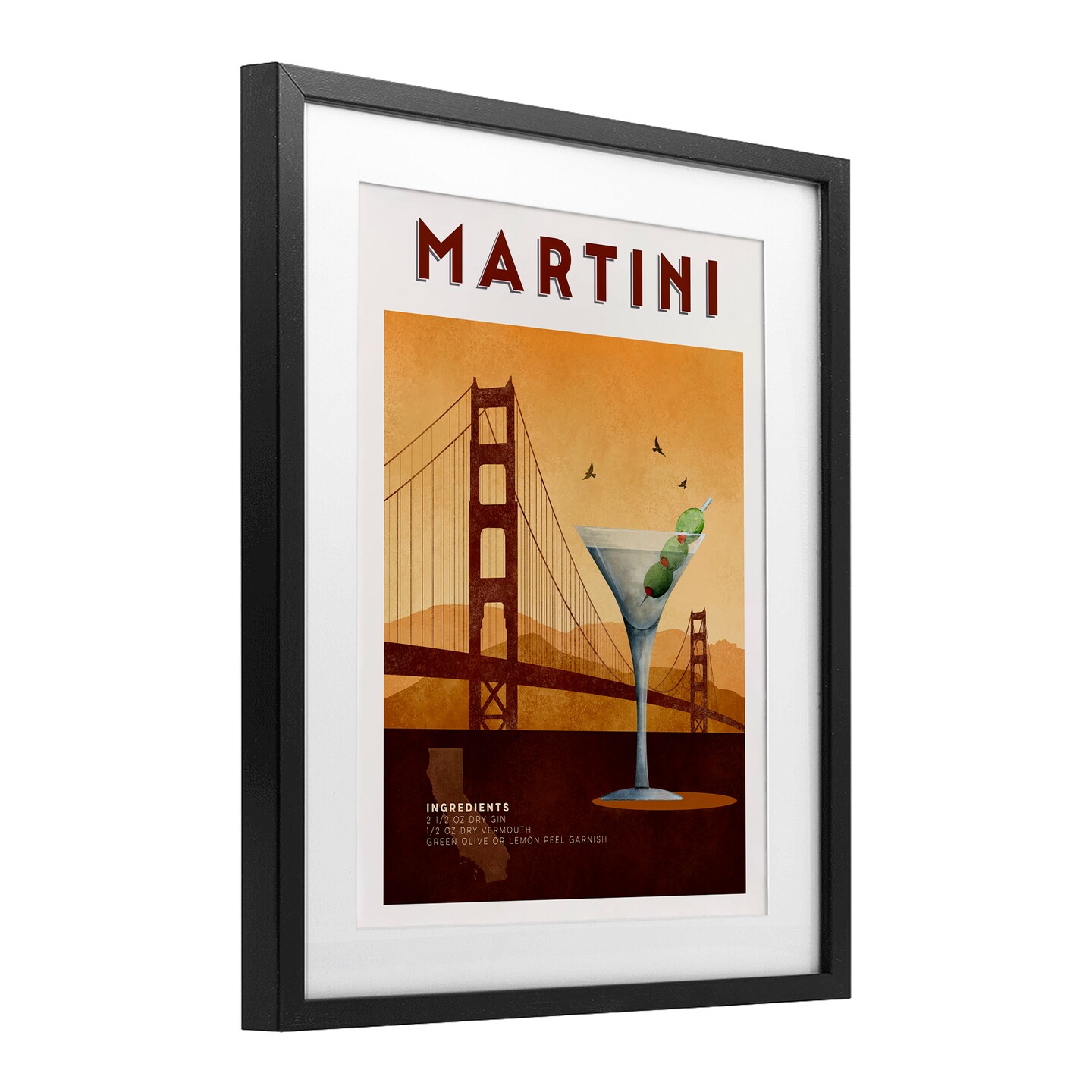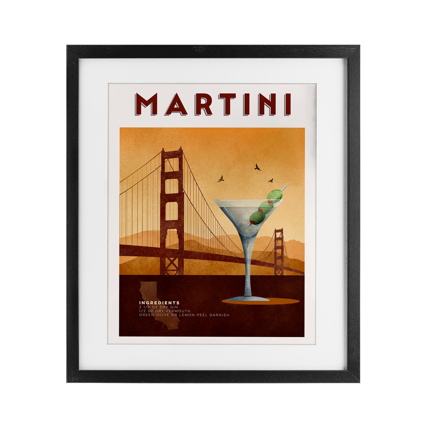 Stupell Industries Retro Martini & Bridge View Framed Print Under Glass, design by Brett Blumenthal
