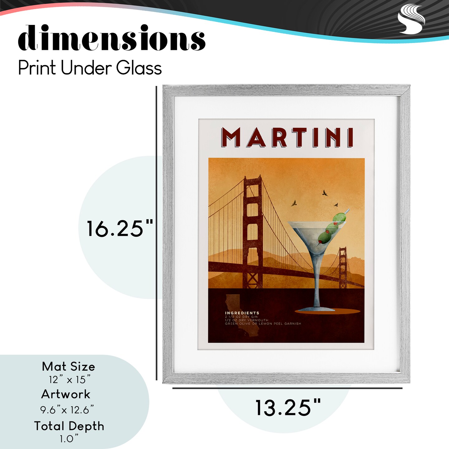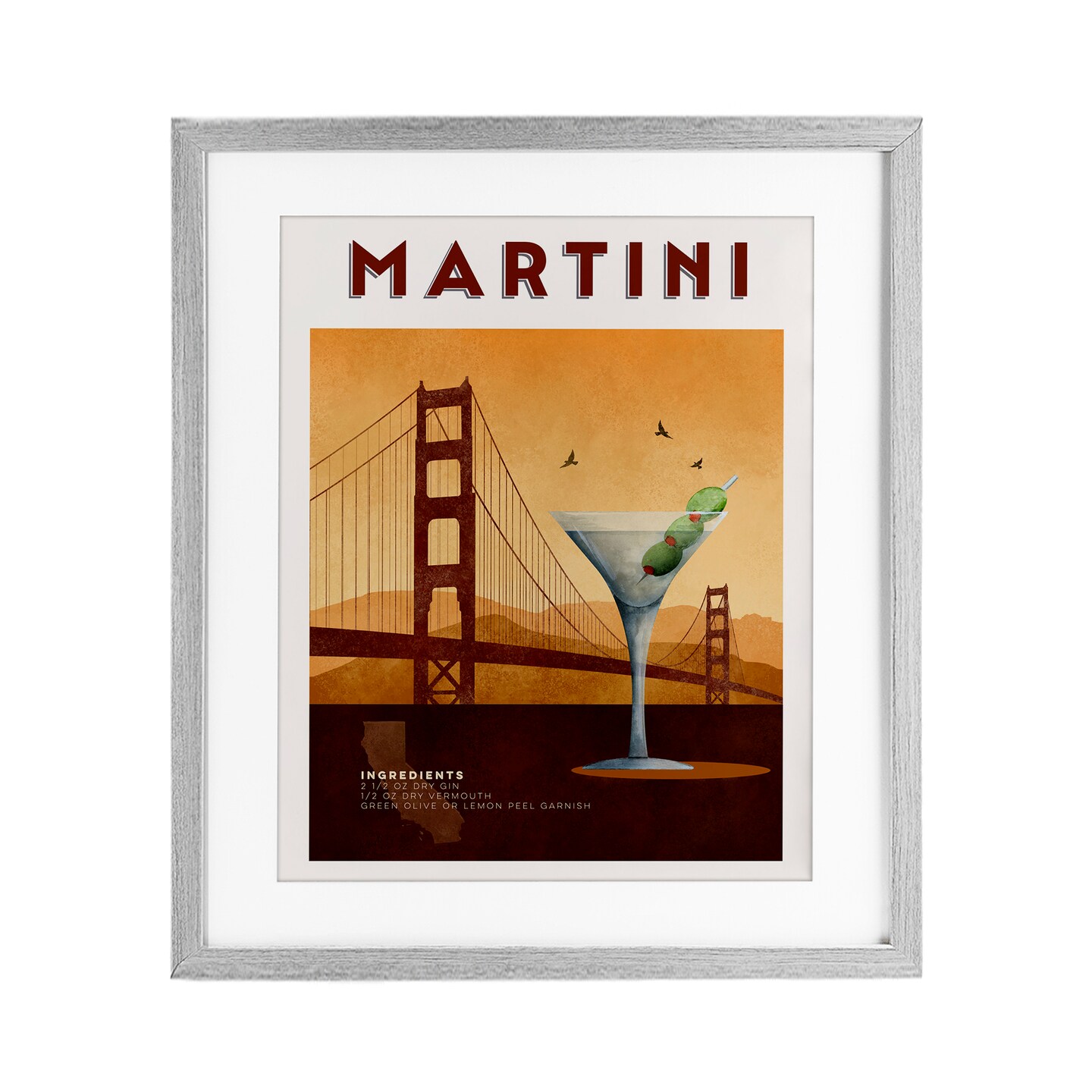 Stupell Industries Retro Martini & Bridge View Framed Print Under Glass, design by Brett Blumenthal