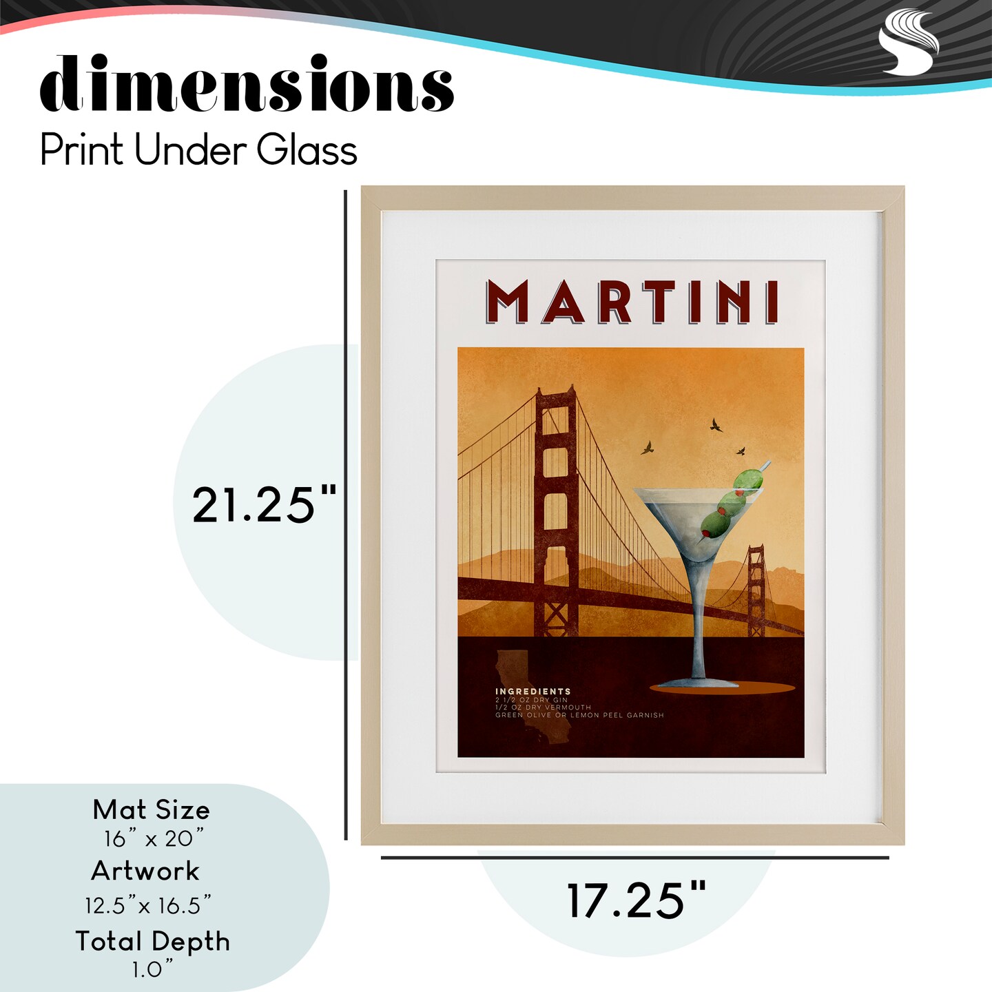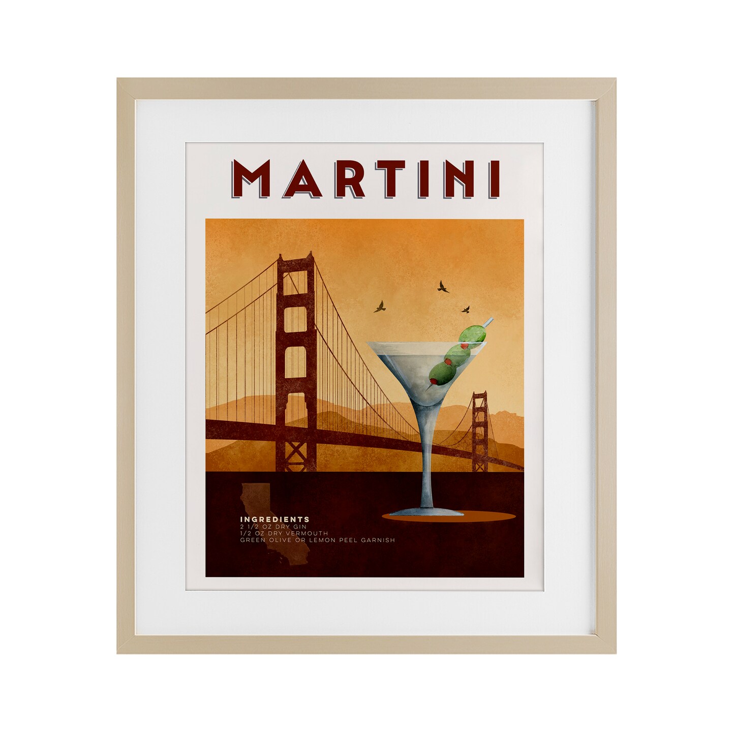 Stupell Industries Retro Martini & Bridge View Framed Print Under Glass, design by Brett Blumenthal