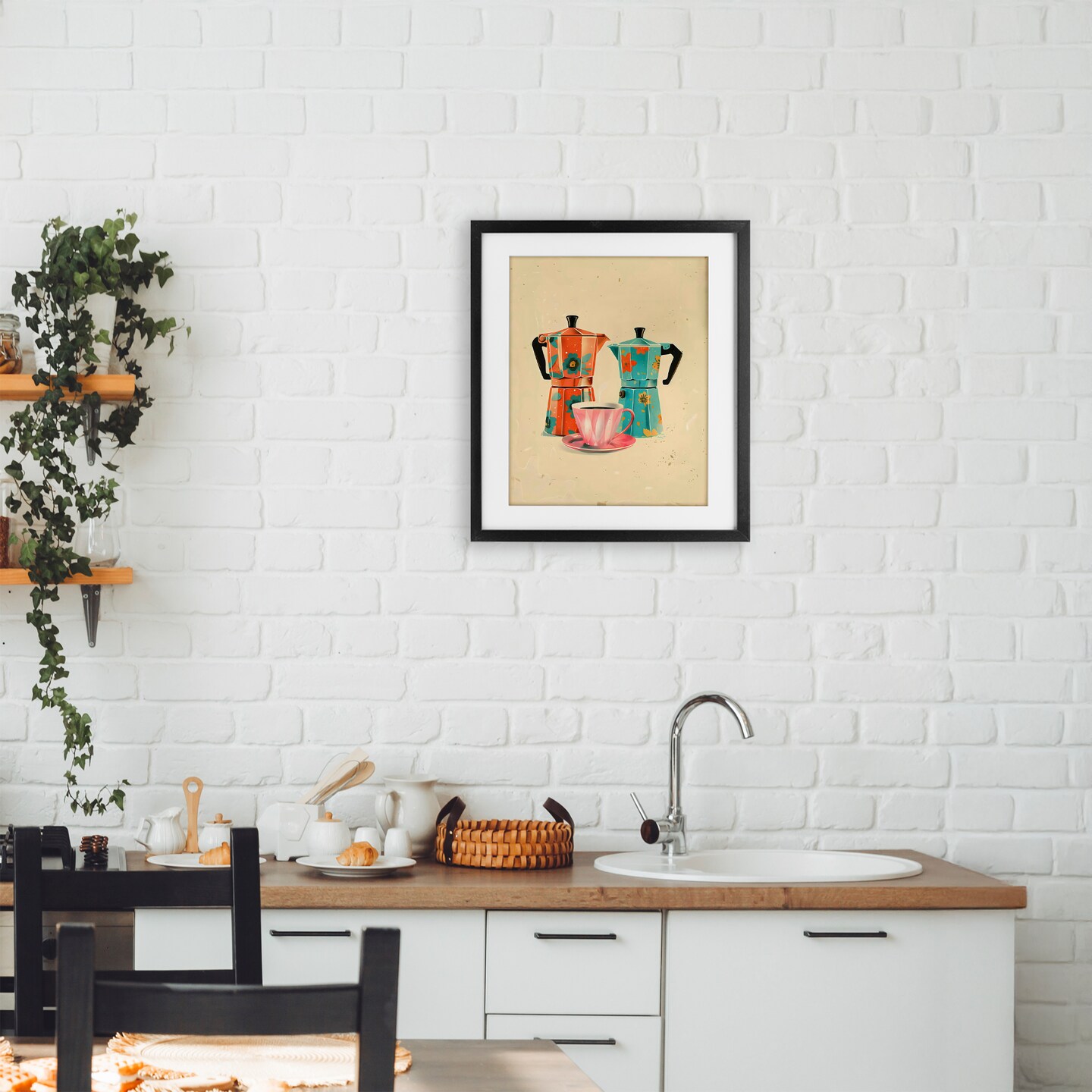 Stupell Industries Retro Morning Moka Pots Black Framed Print Under Glass, design by Arlington Prints