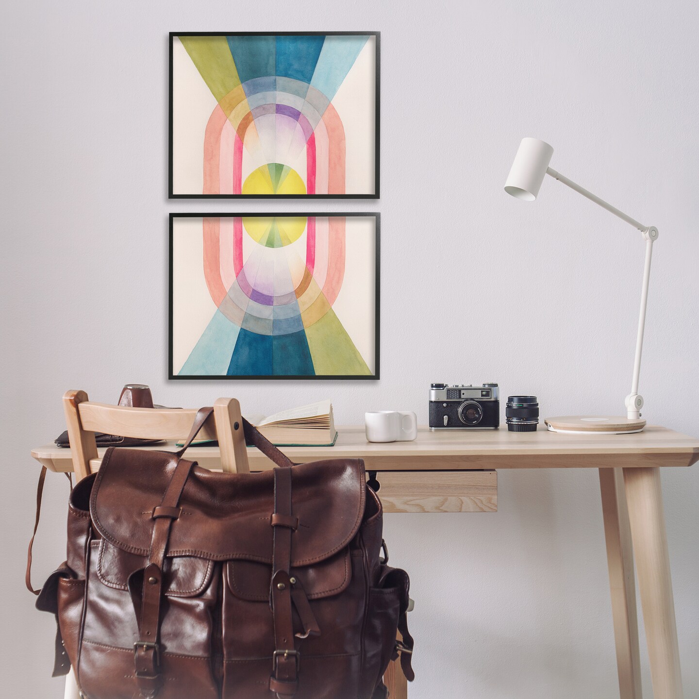 Stupell Industries Retro Pastel Structured Shapes 2pc Framed Giclee Wall Art Set Design by Grace Popp