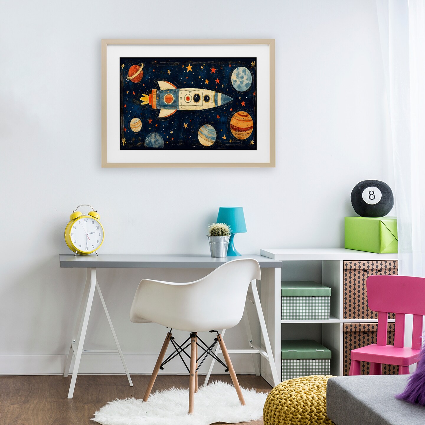 Stupell Industries Retro Rocket & Planets Framed Print Under Glass, design by Creative Studio