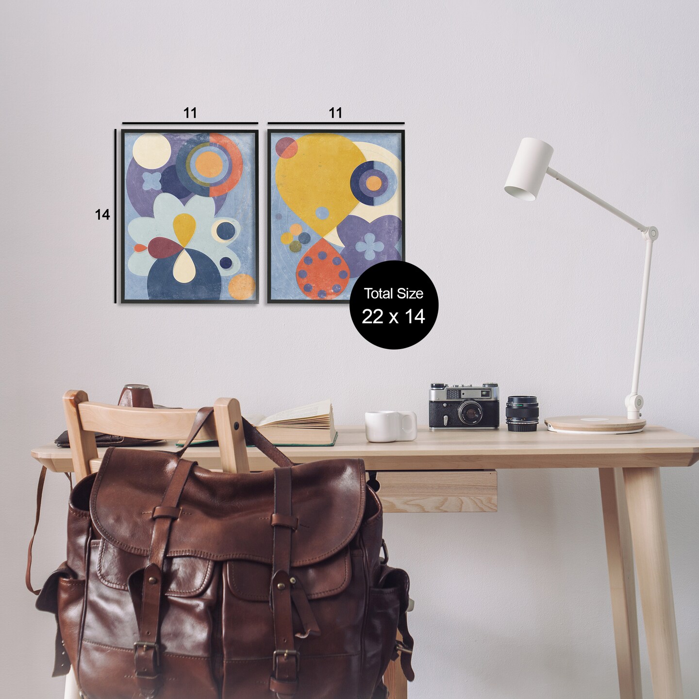 Stupell Industries Retro Shapes on Blue 2pc Framed Giclee Wall Art Set Design by Victoria Barnes