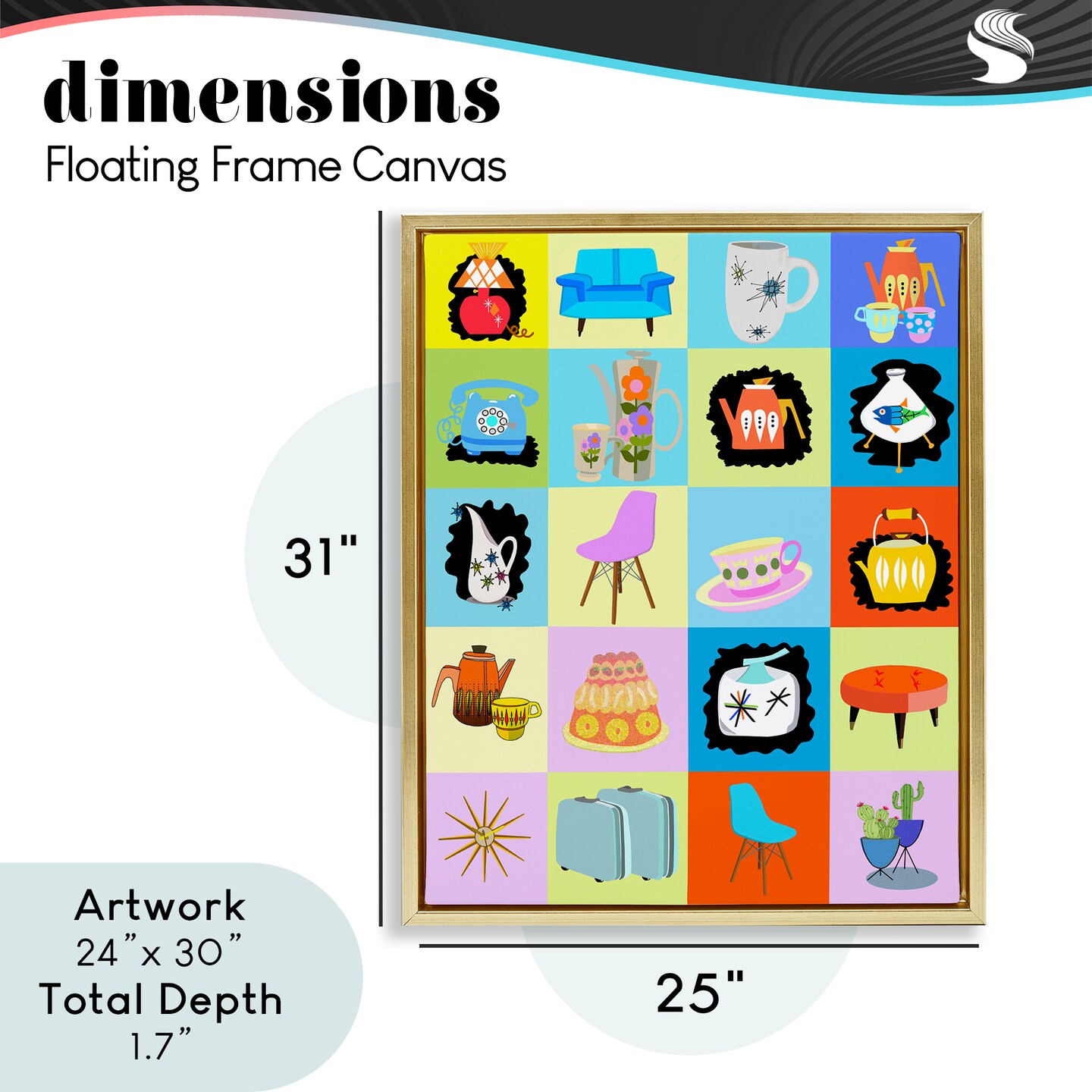 Stupell Industries Retro Vintage Vignettes Floating Frame, design by Lynnda Rakos