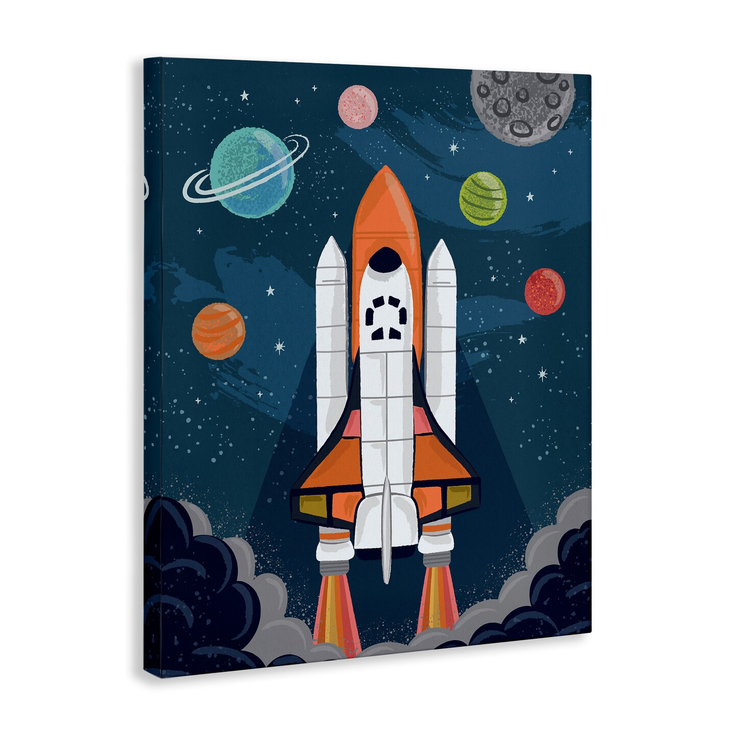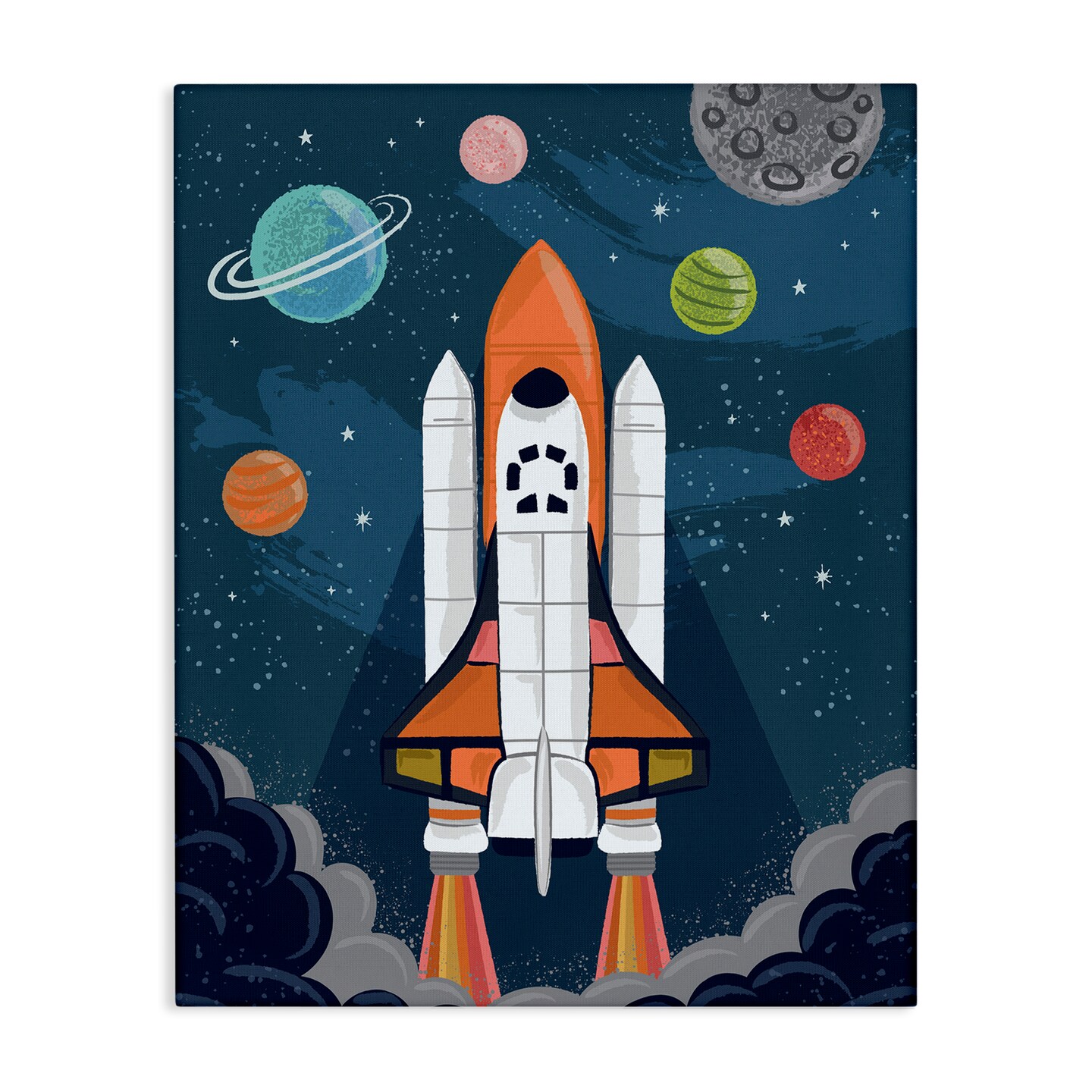 Stupell Industries Rocket Ship Ready for Flight Outer Space Planets Canvas Design By Lisa Perry Whitebutton