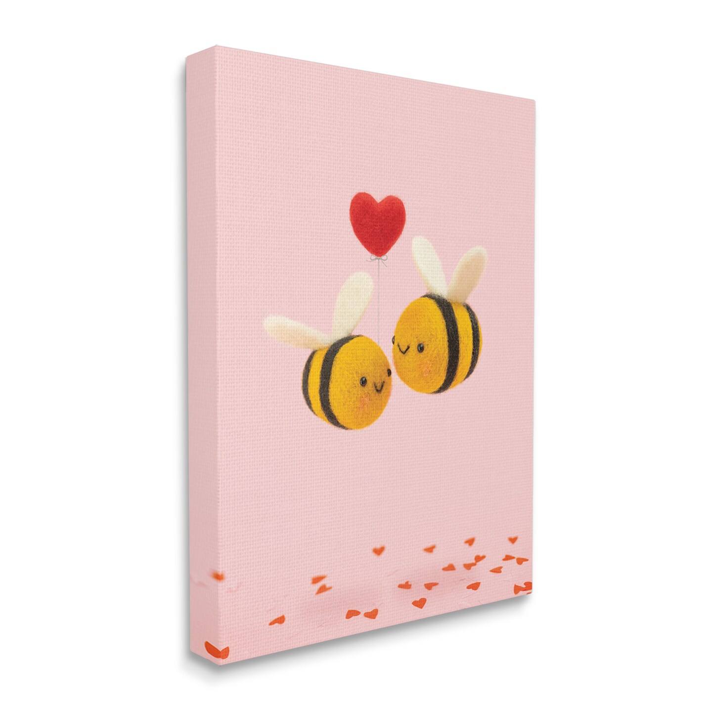 Stupell Industries Romantic Bumblebees Pink Hearts Canvas Wall Art