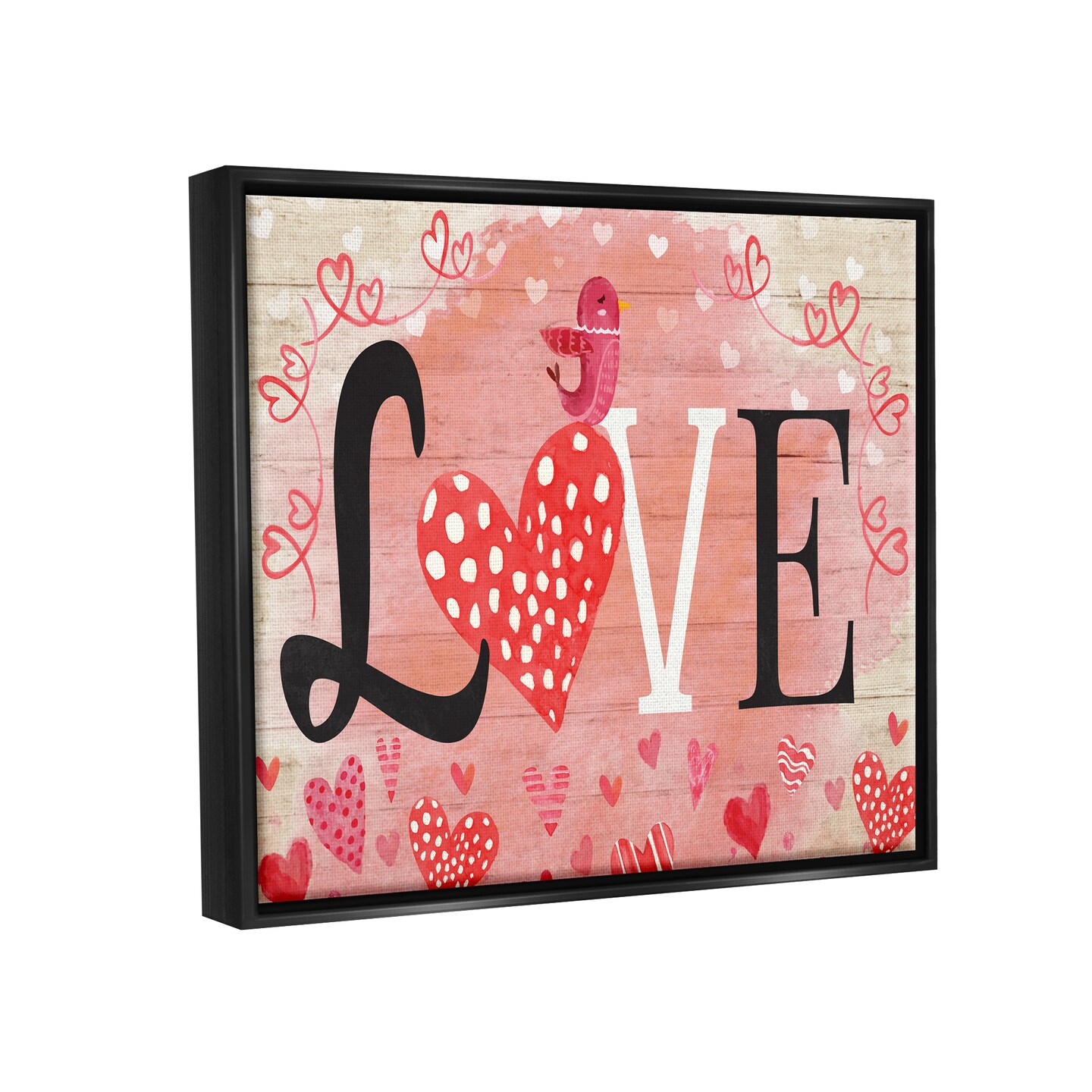 Stupell Industries Romantic Love Patterned Hearts Bird Black Framed Floater Canvas Wall Art