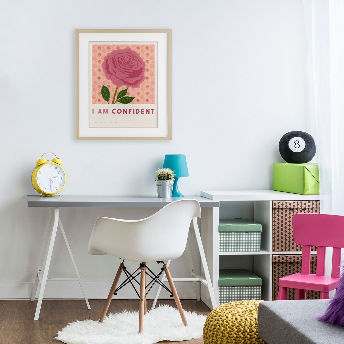 Stupell Industries Rose I Am Confident Affirmation Framed Print Under Glass, design by Courtney Haley