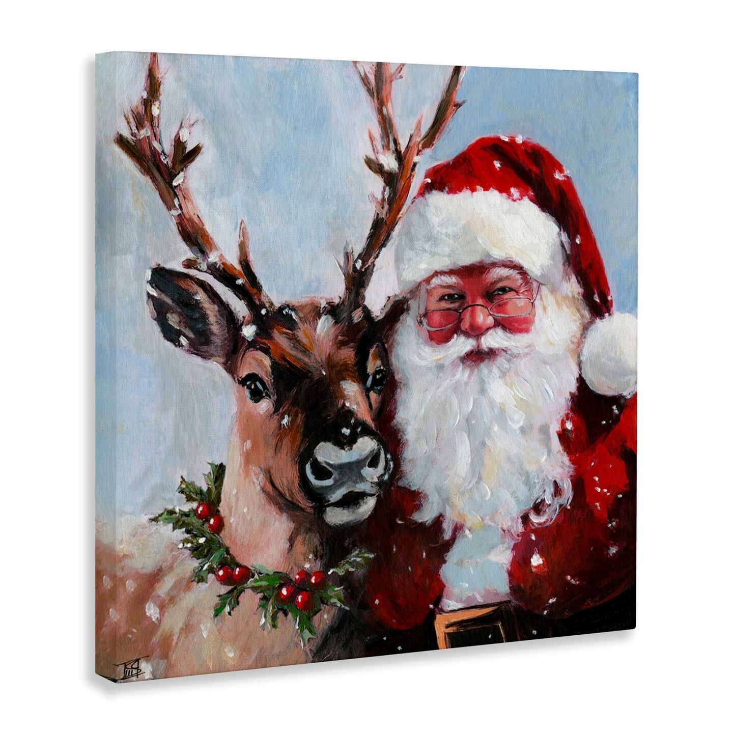 Stupell Industries Rosy Cheeked Santa & Reindeer Canvas Wall Art, design by Sara Culpepper