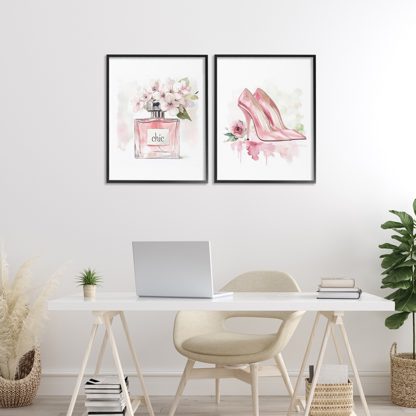 Stupell Industries Rosy Pastel Perfume & Heels 2pc Framed Giclee Set, design by Christine Simpson Art